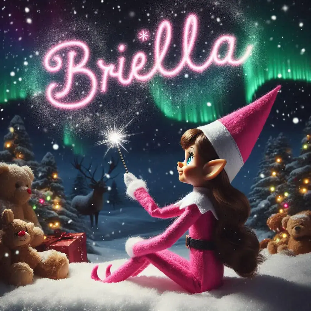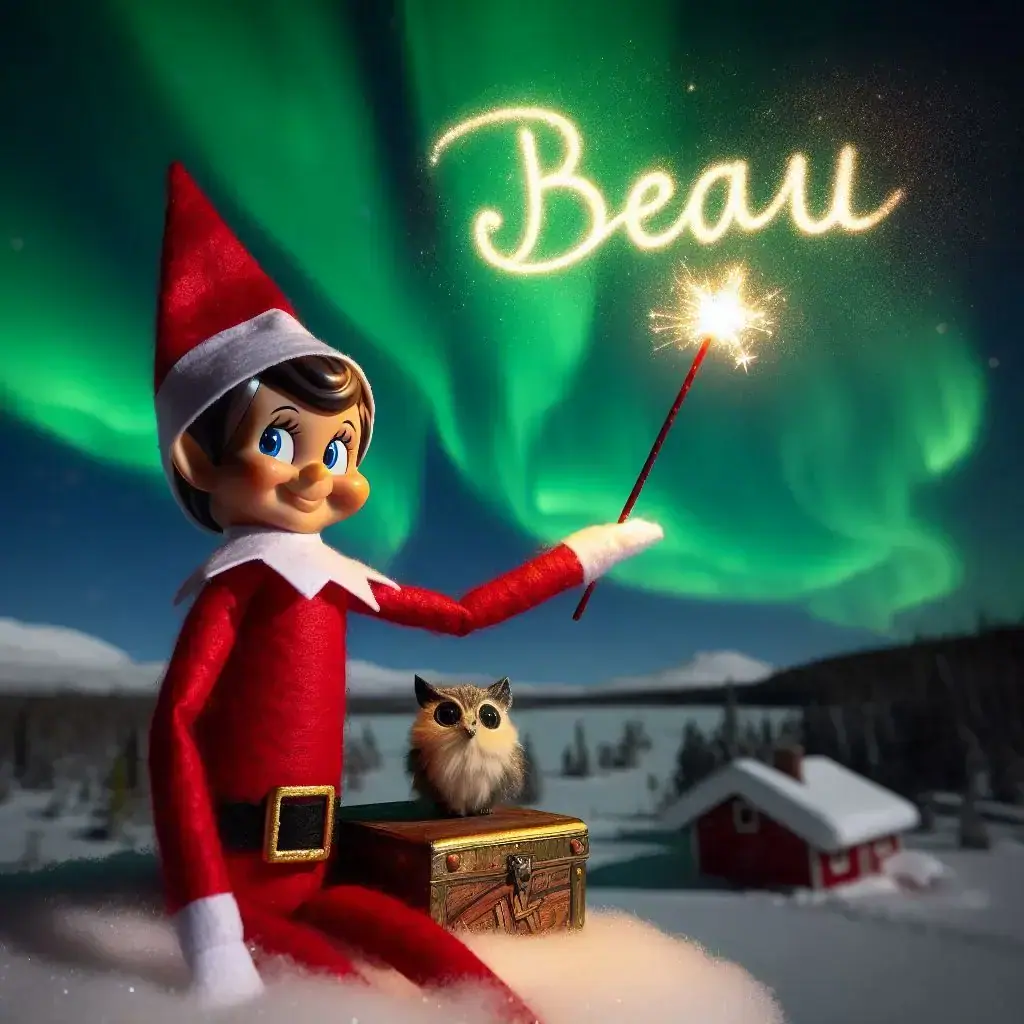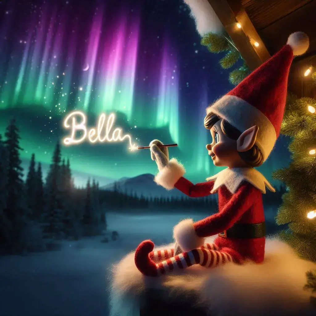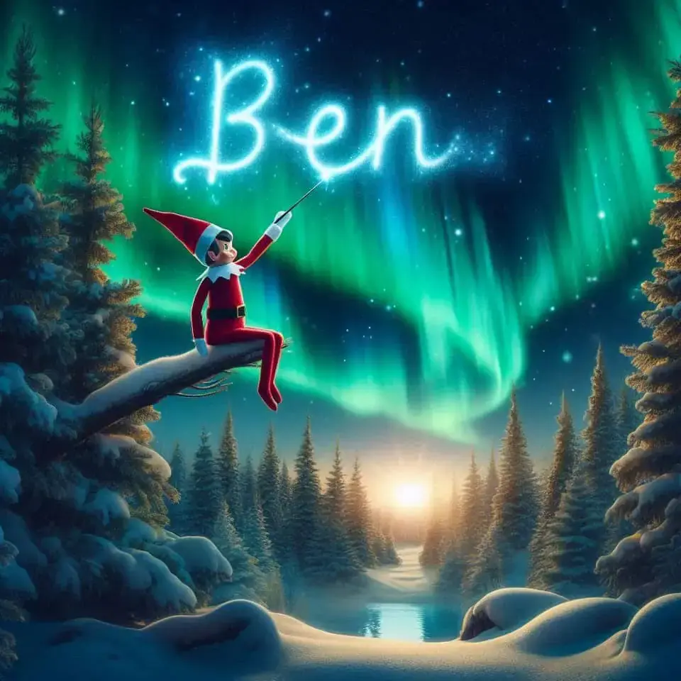 Below you'll find AI generated elf images for names starting with the letter 'B'. You can also have a go at making your own elf writing in the sky AI images.