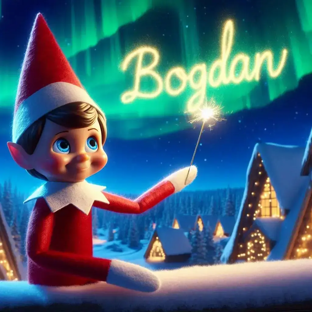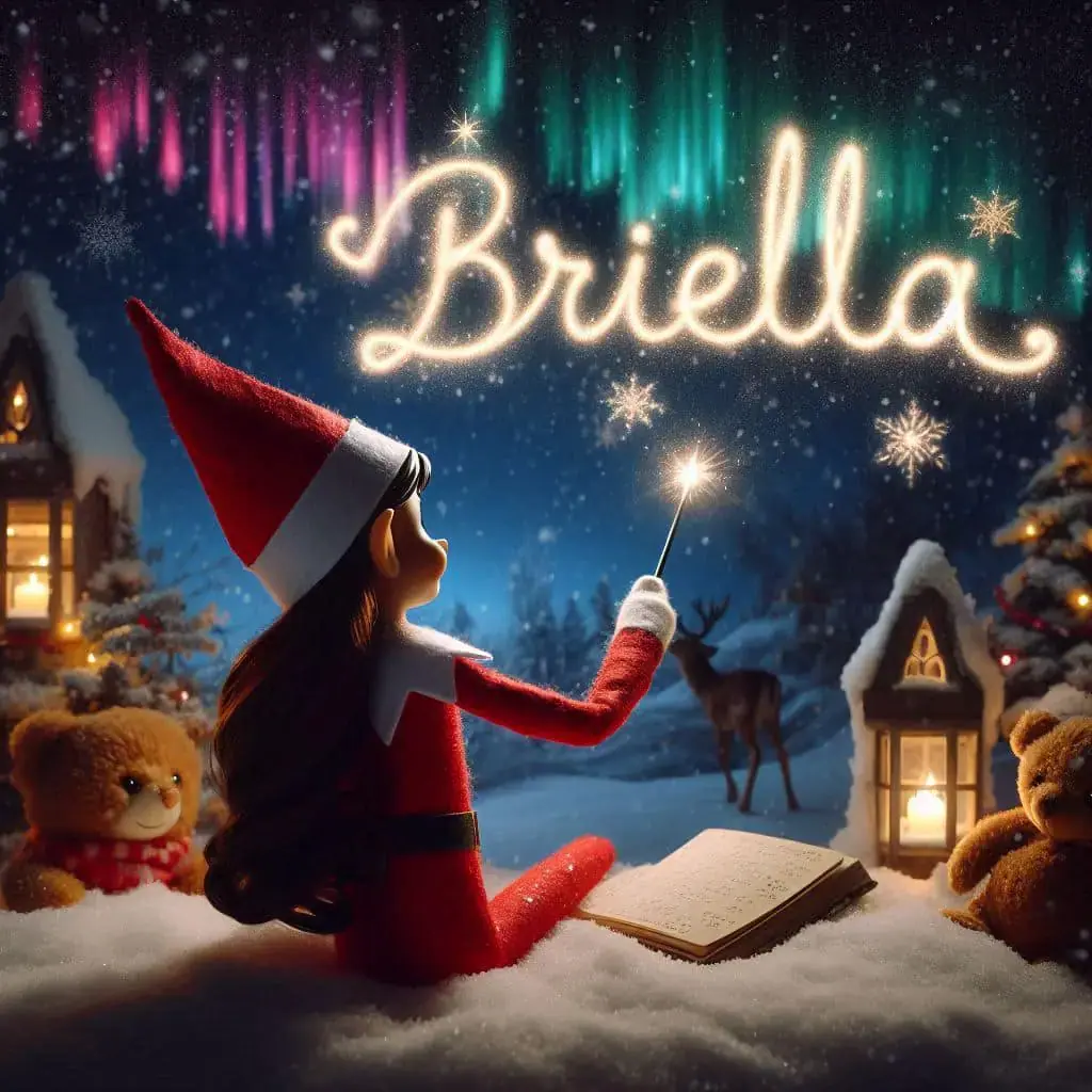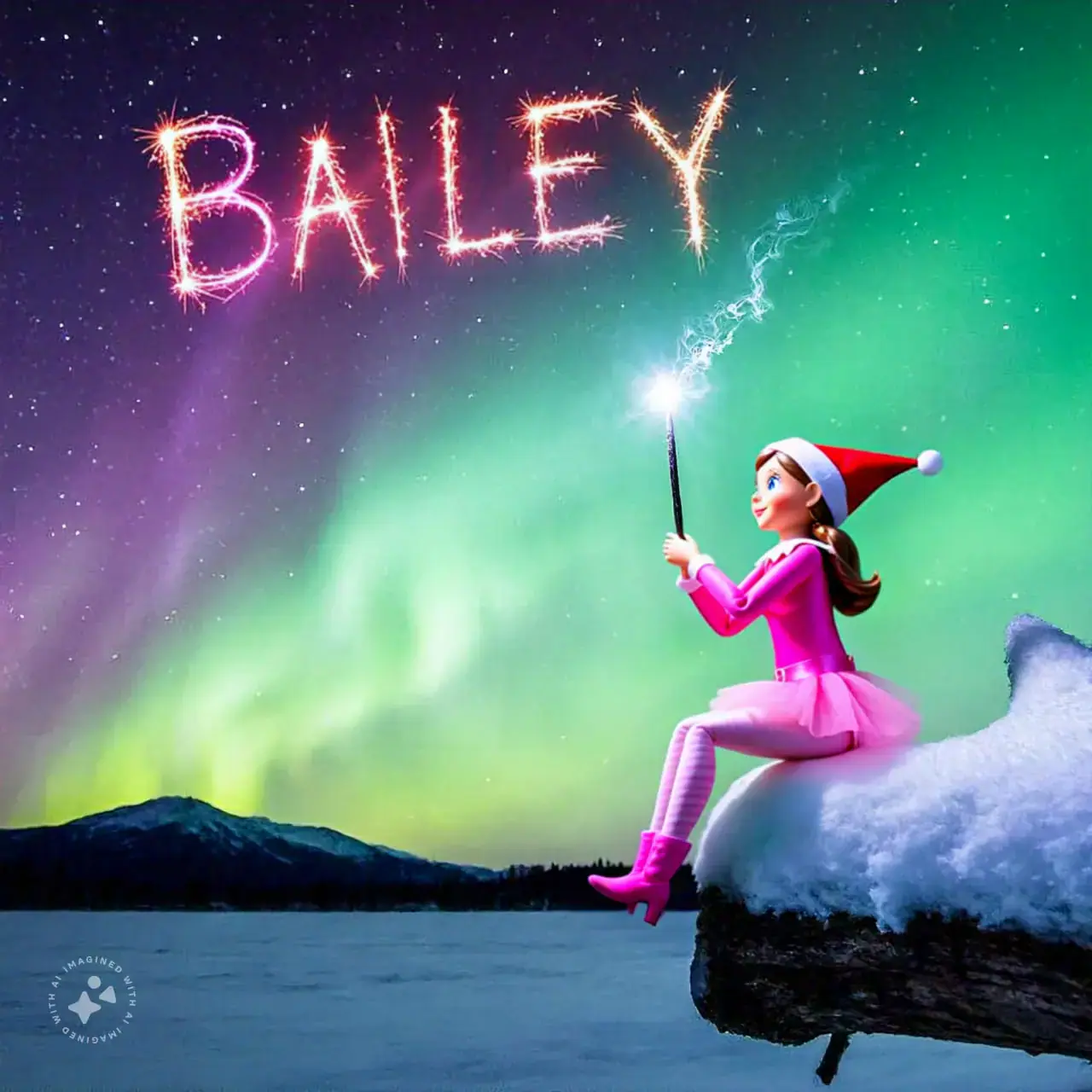 Below you'll find AI generated elf images for names starting with the letter 'B'. You can also have a go at making your own elf writing in the sky AI images.