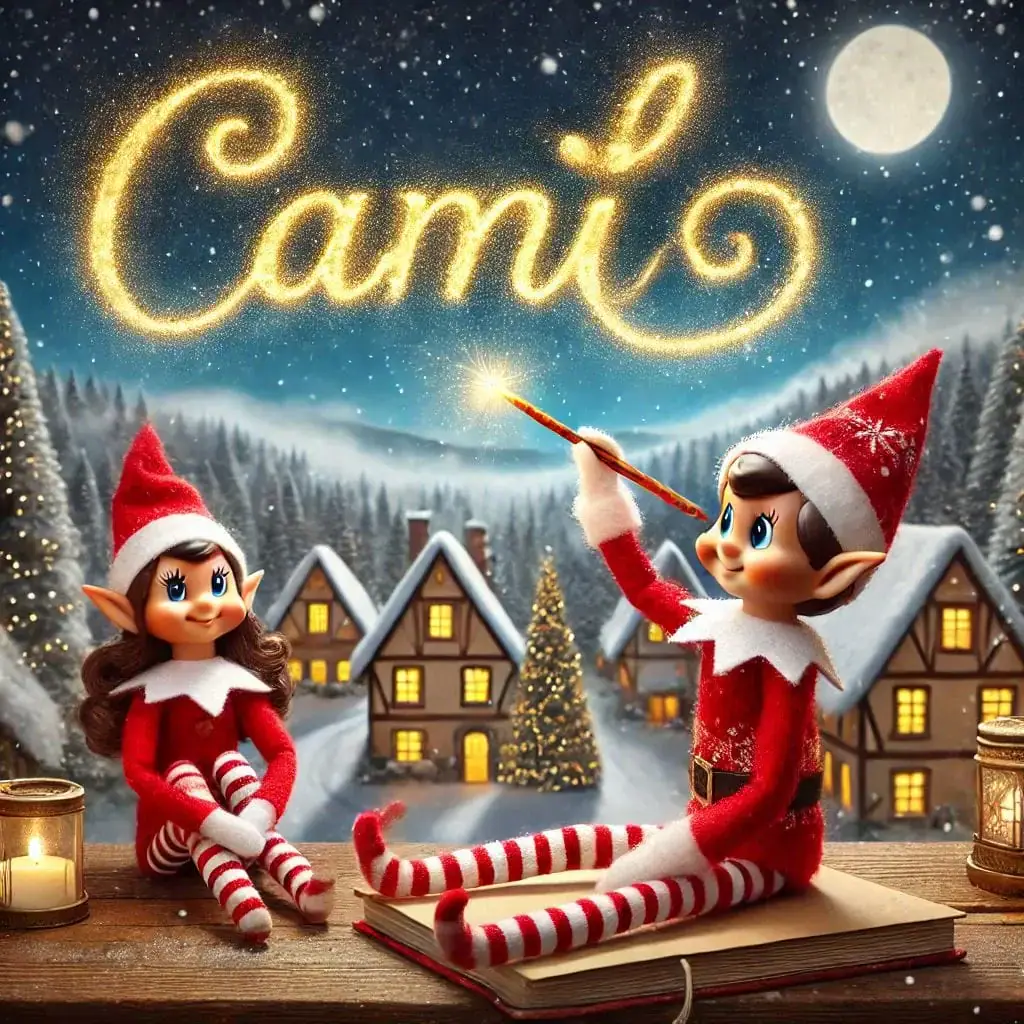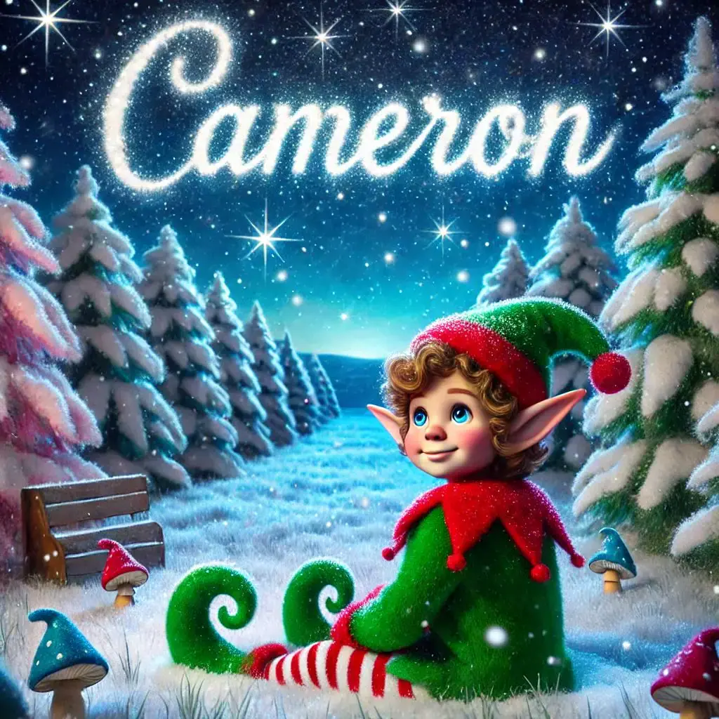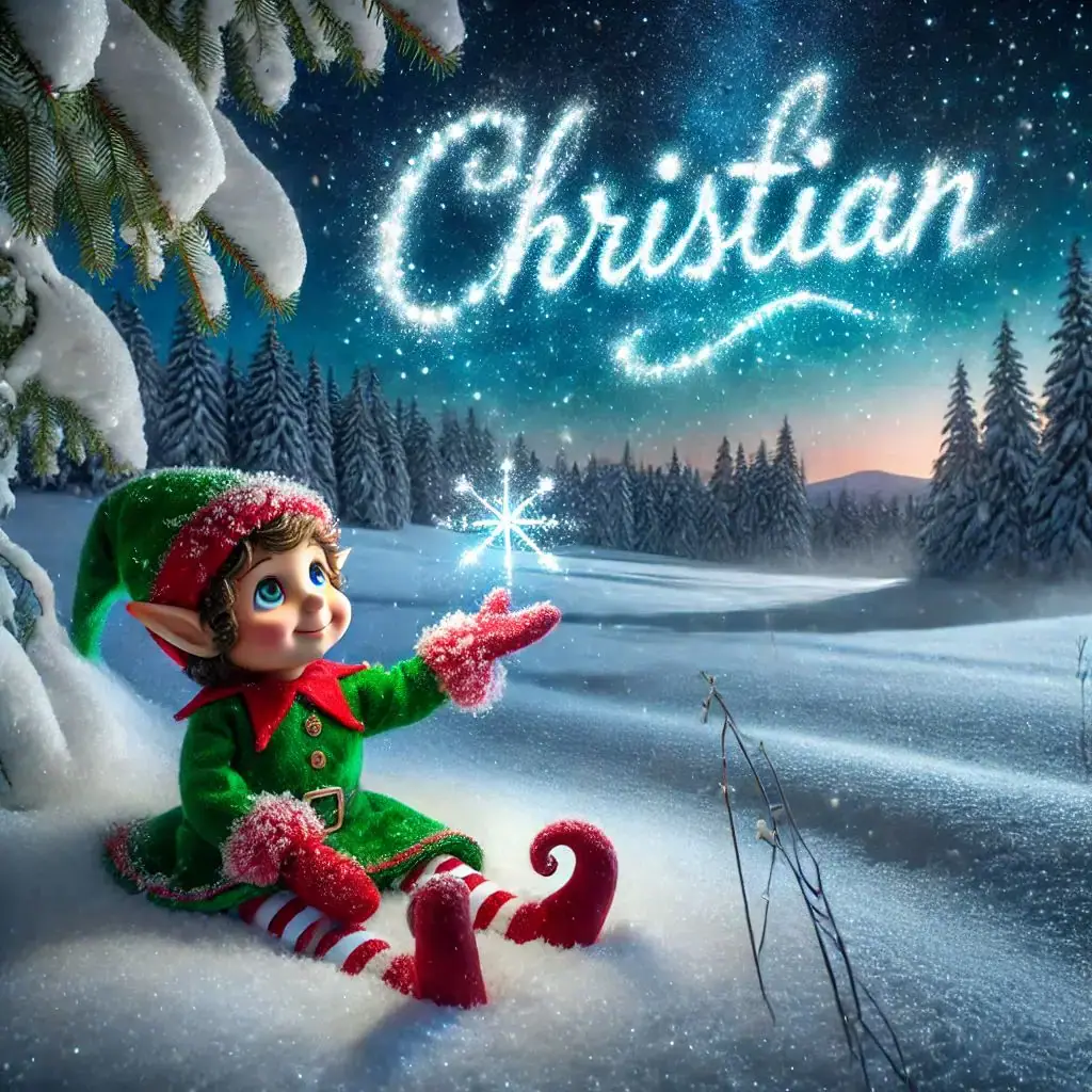 Below you'll find AI generated elf images for names starting with the letter 'C'. You can also have a go at making your own elf writing in the sky AI images.