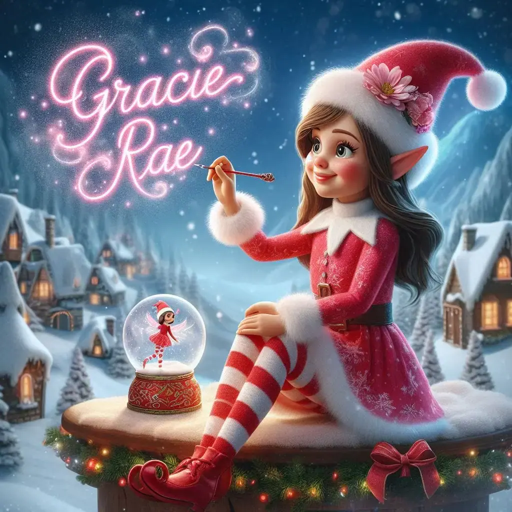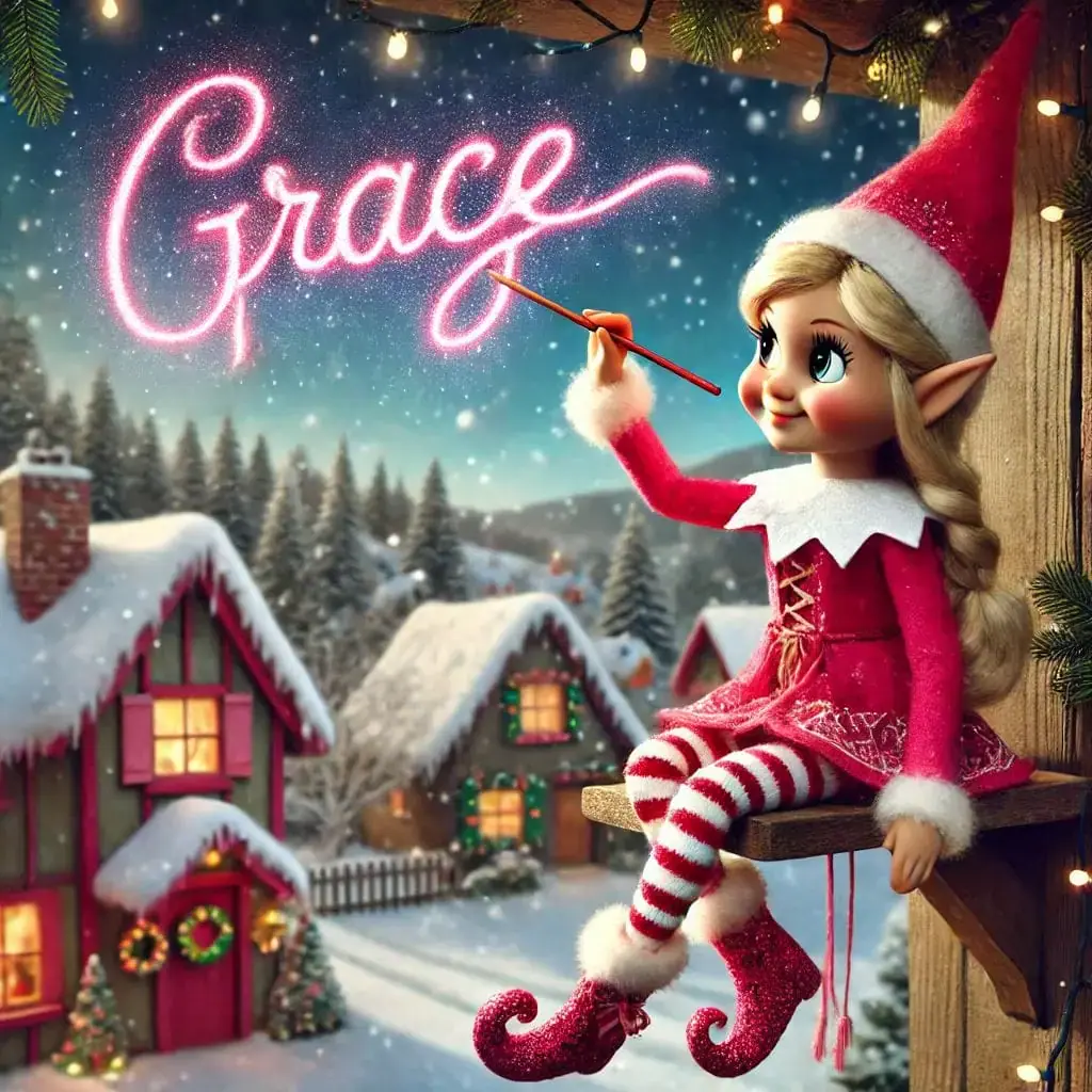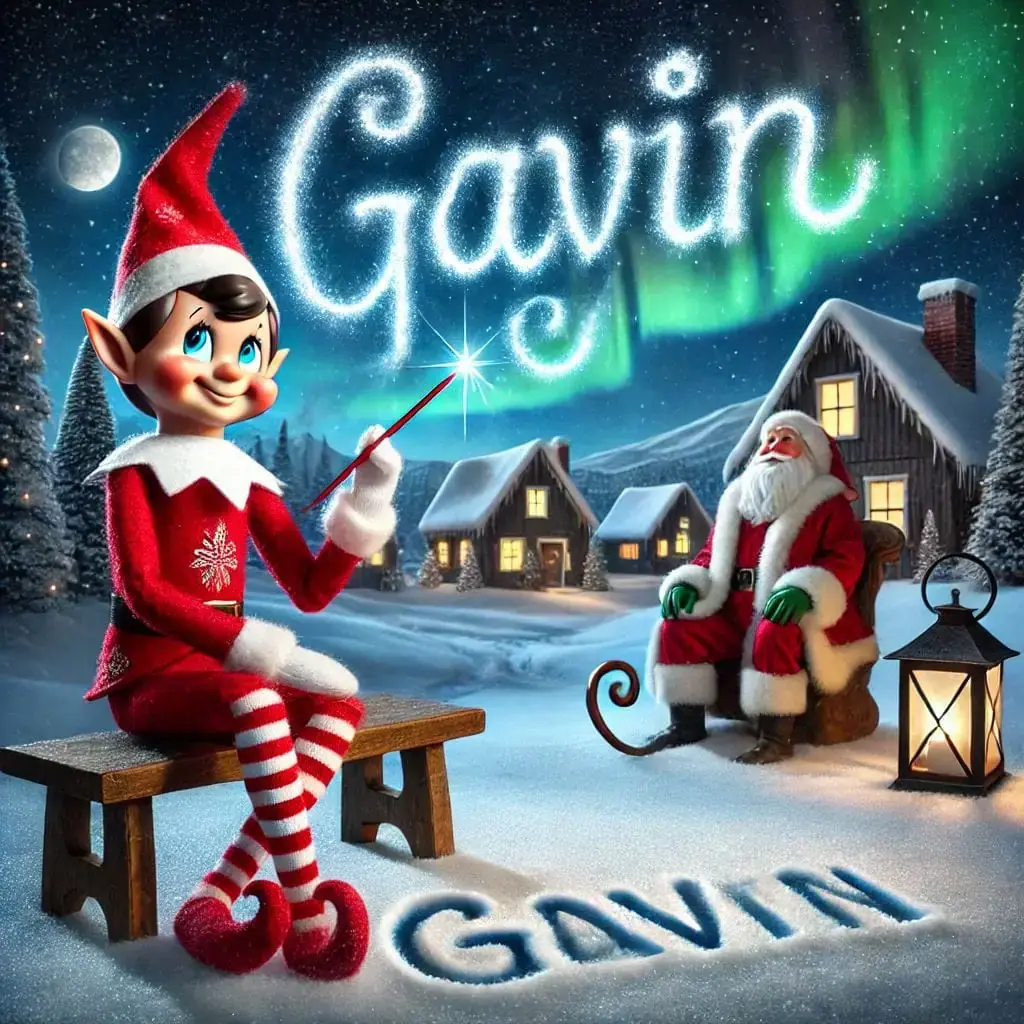 Below you'll find AI generated elf images for names starting with the letter 'G'. You can also have a go at making your own elf writing in the sky AI images.