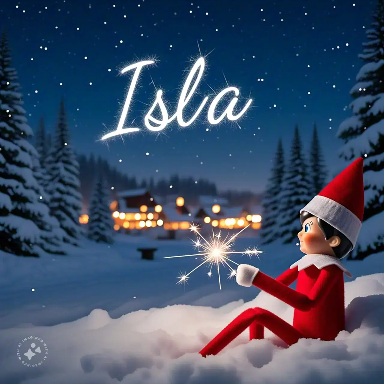 Below you'll find AI generated elf images for names starting with the letter 'I'. You can also have a go at making your own elf writing in the sky AI images.
