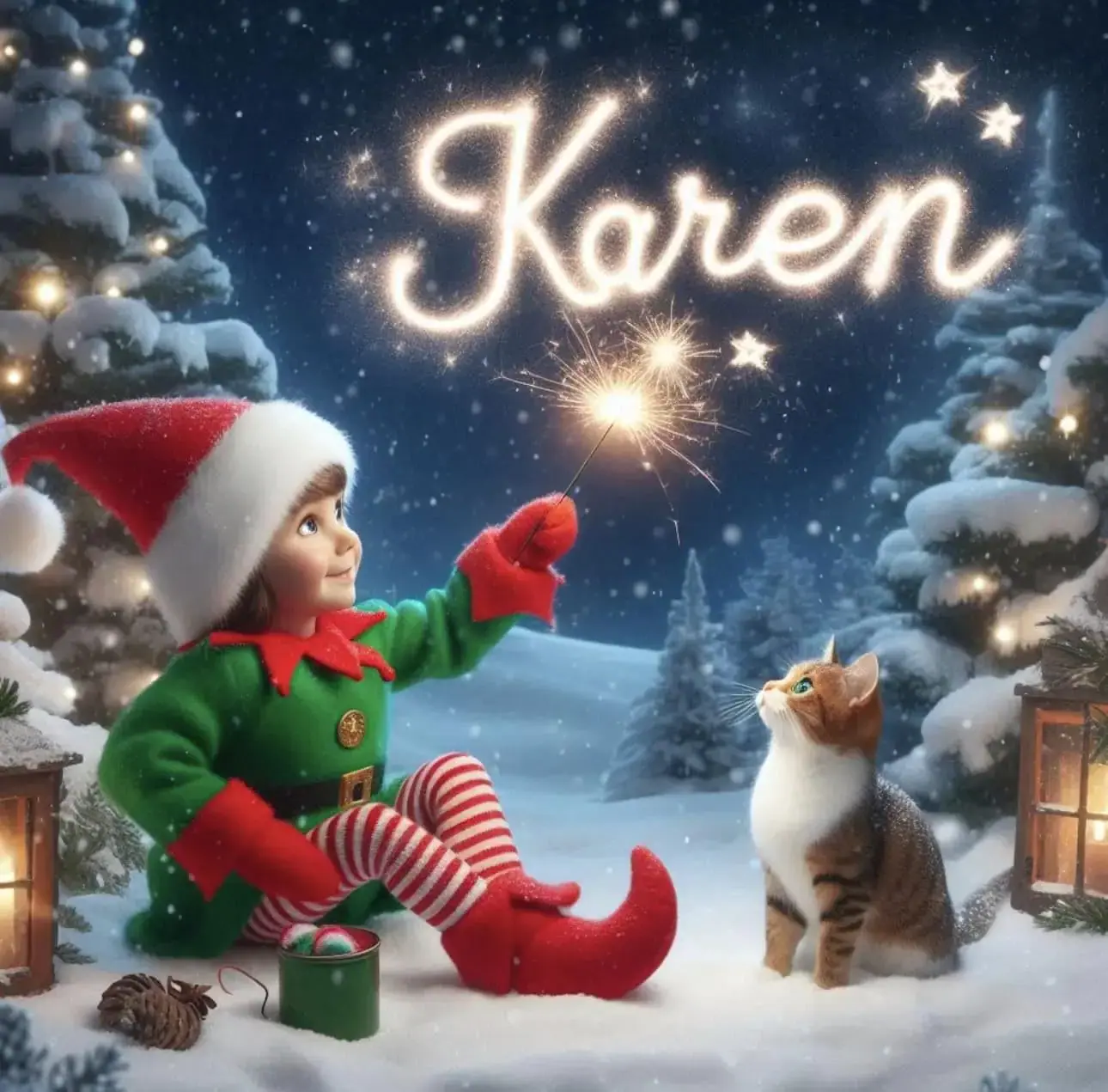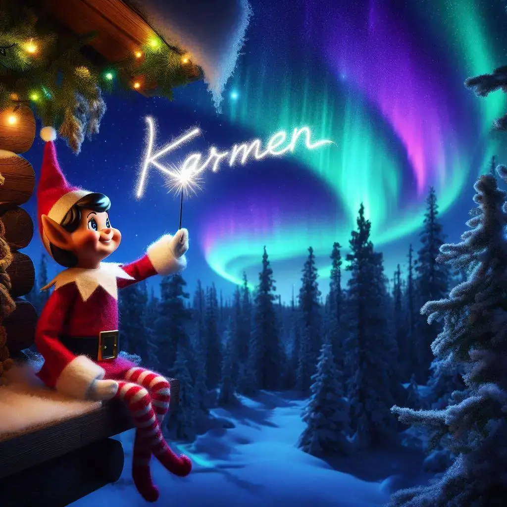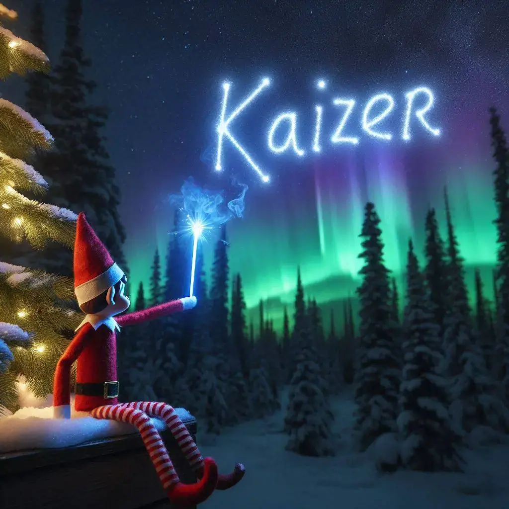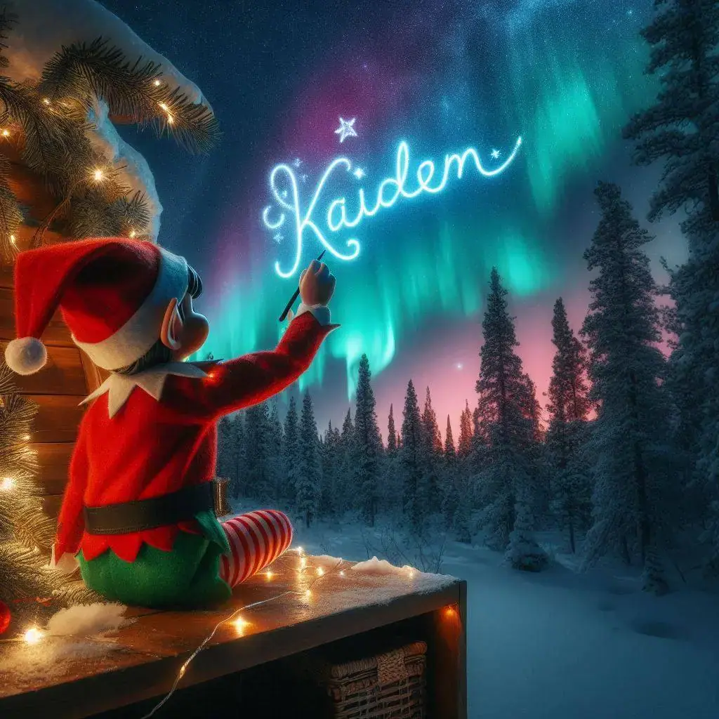 Below you'll find AI generated elf images for names starting with the letter 'K'. You can also have a go at making your own elf writing in the sky AI images.