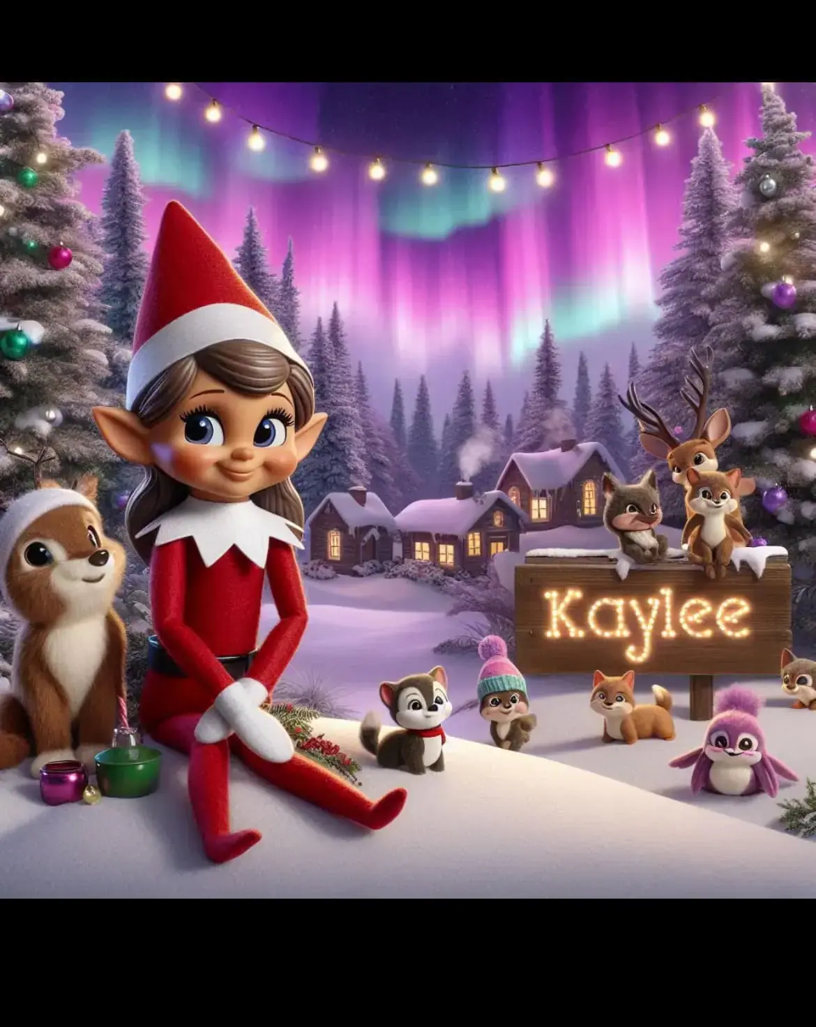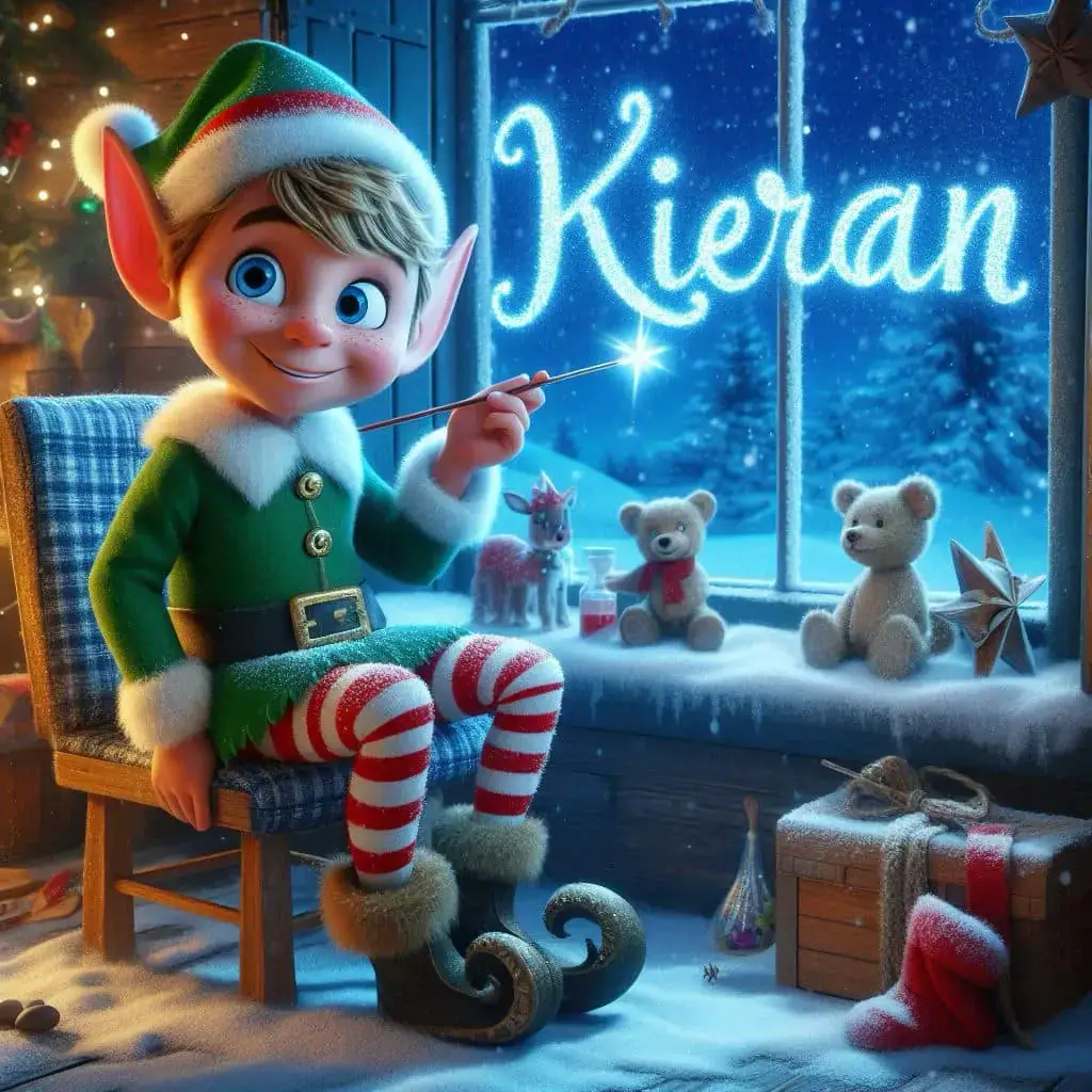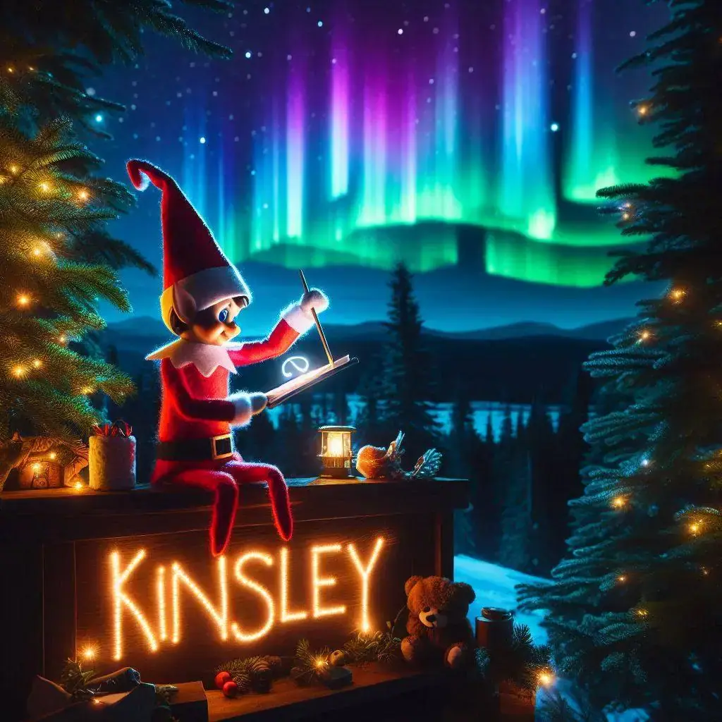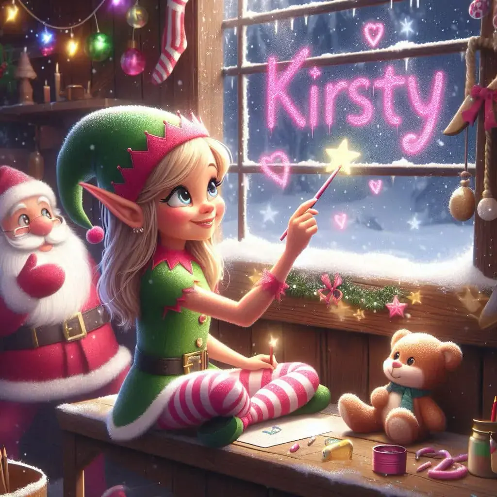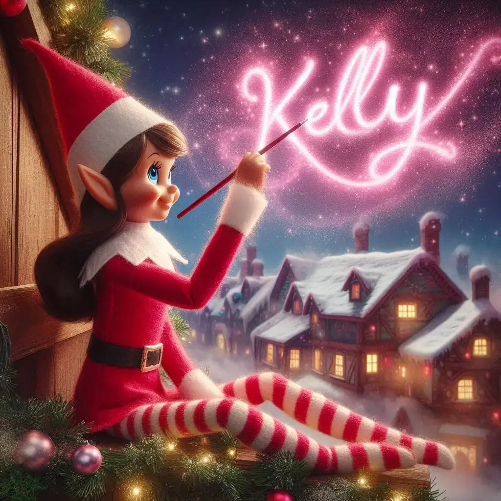 Below you'll find AI generated elf images for names starting with the letter 'K'. You can also have a go at making your own elf writing in the sky AI images.