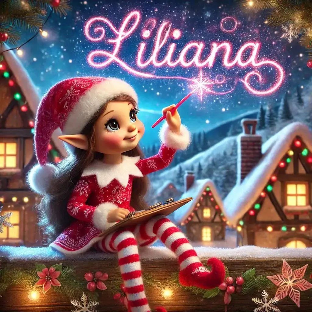 Below you'll find AI generated elf images for names starting with the letter 'L'. You can also have a go at making your own elf writing in the sky AI images.