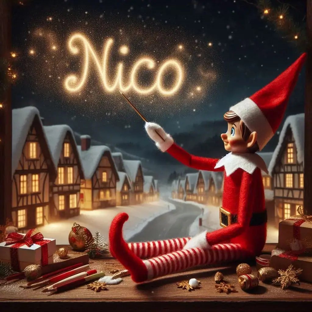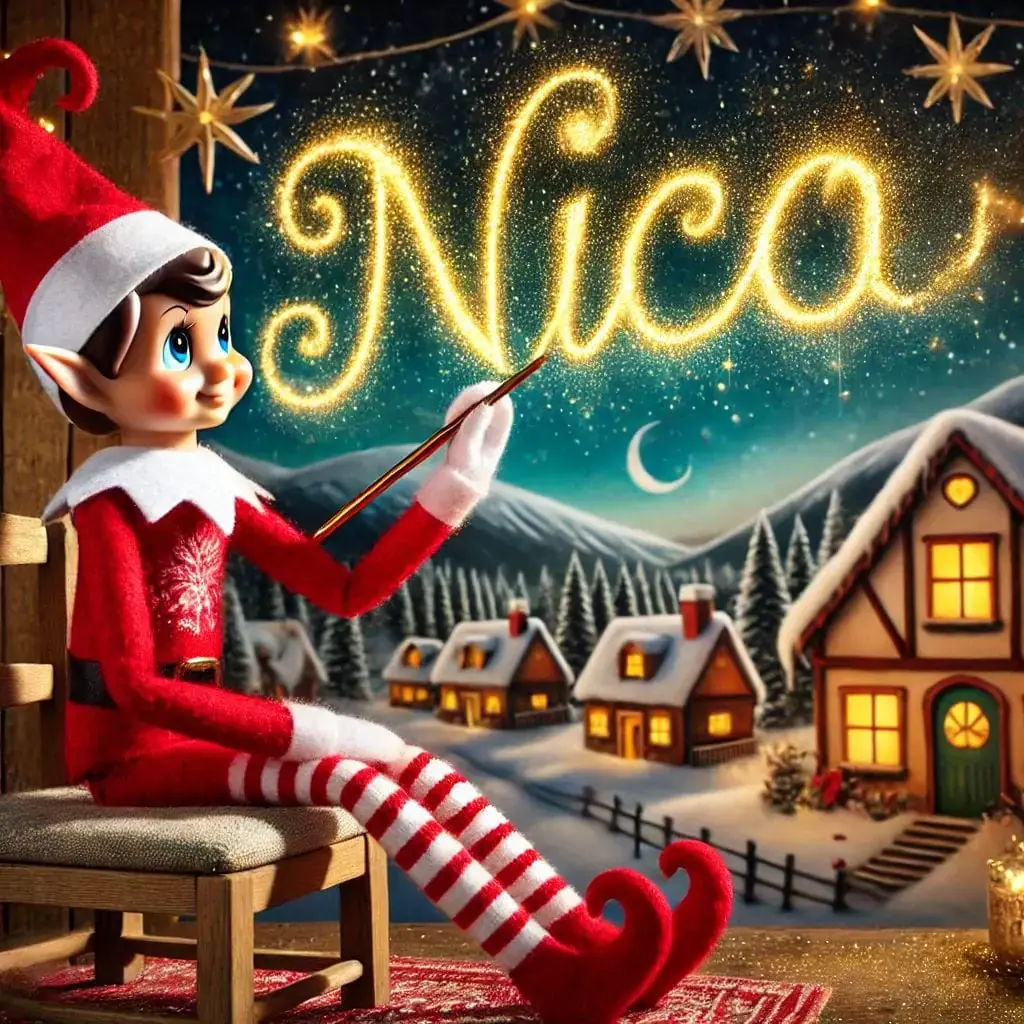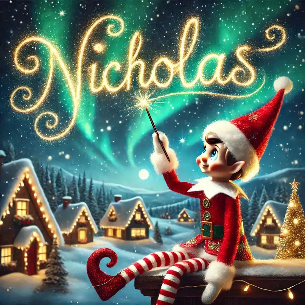 Below you'll find AI generated elf images for names starting with the letter 'N'. You can also have a go at making your own elf writing in the sky AI images.