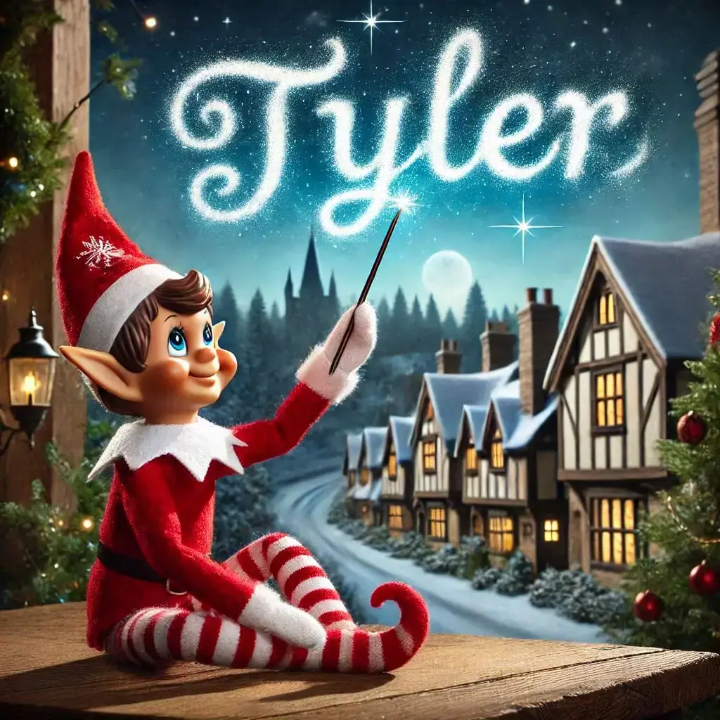 Below you'll find AI generated elf images for names starting with the letter 'T'. You can also have a go at making your own elf writing in the sky AI images.