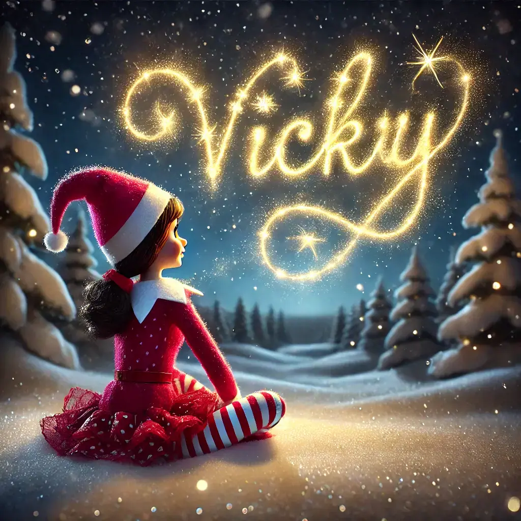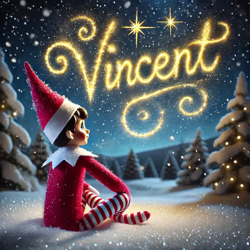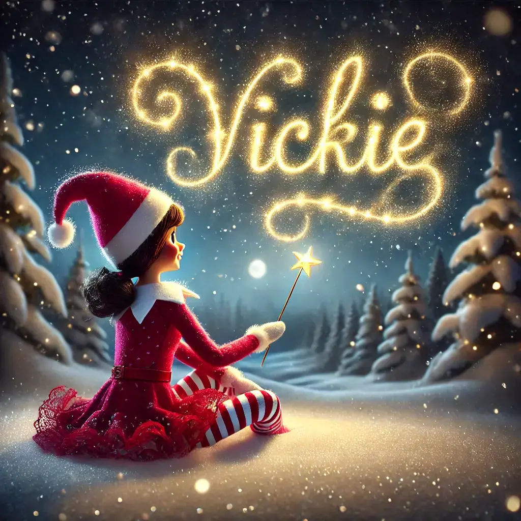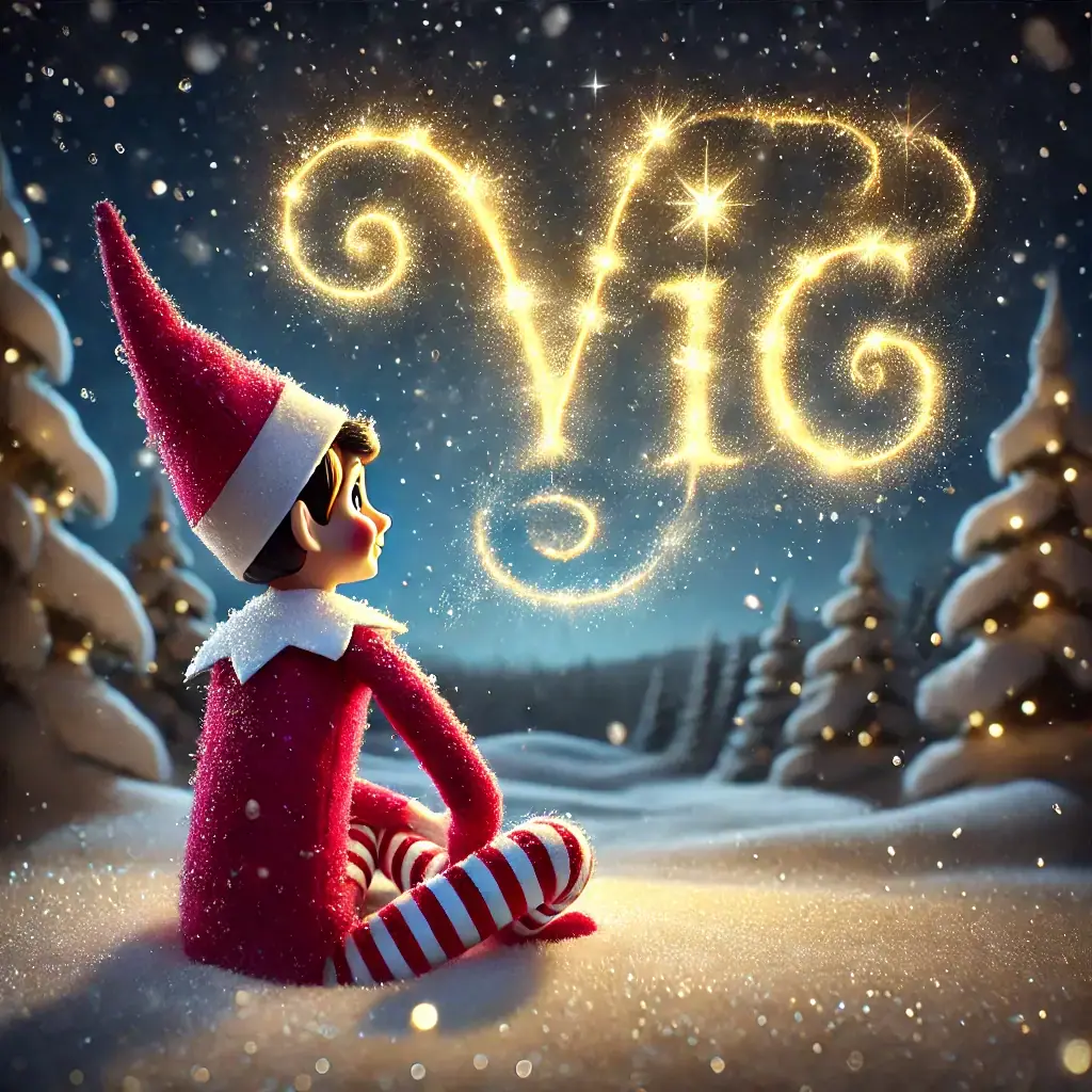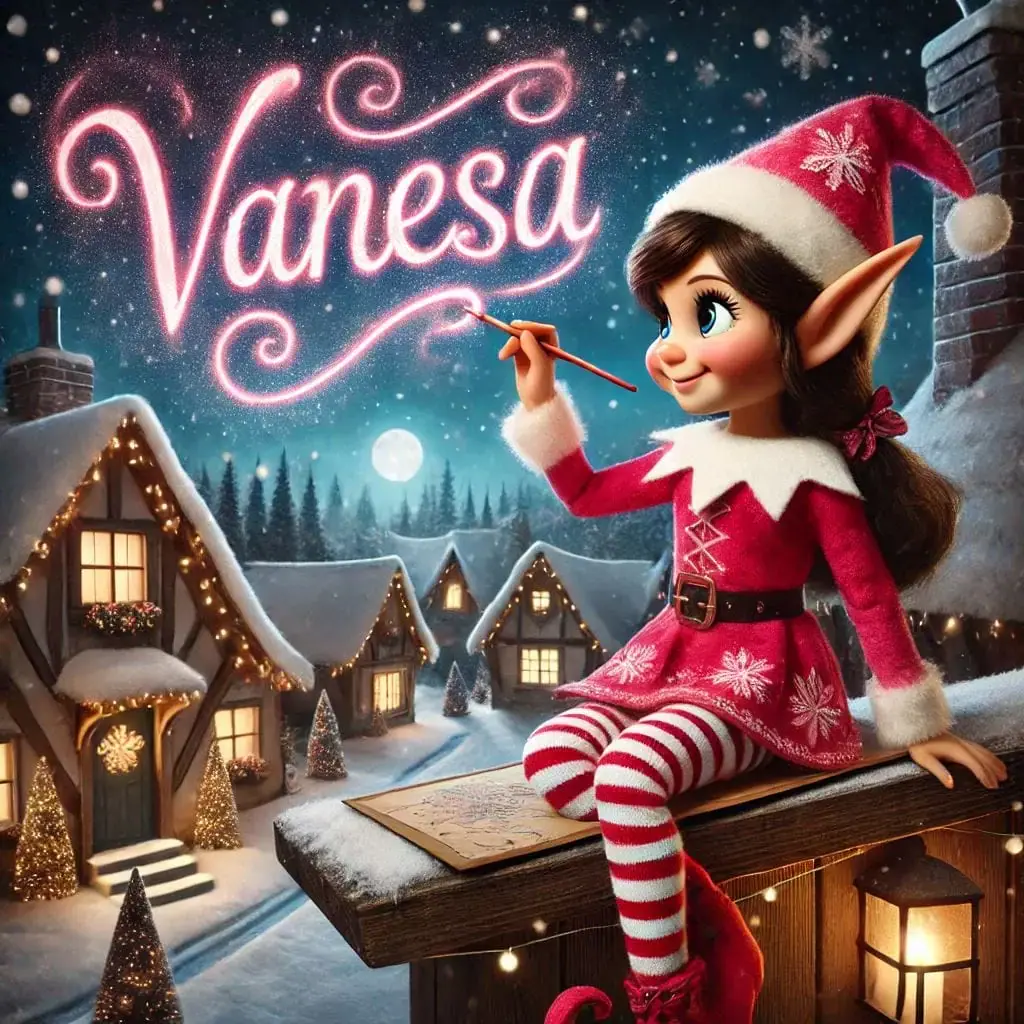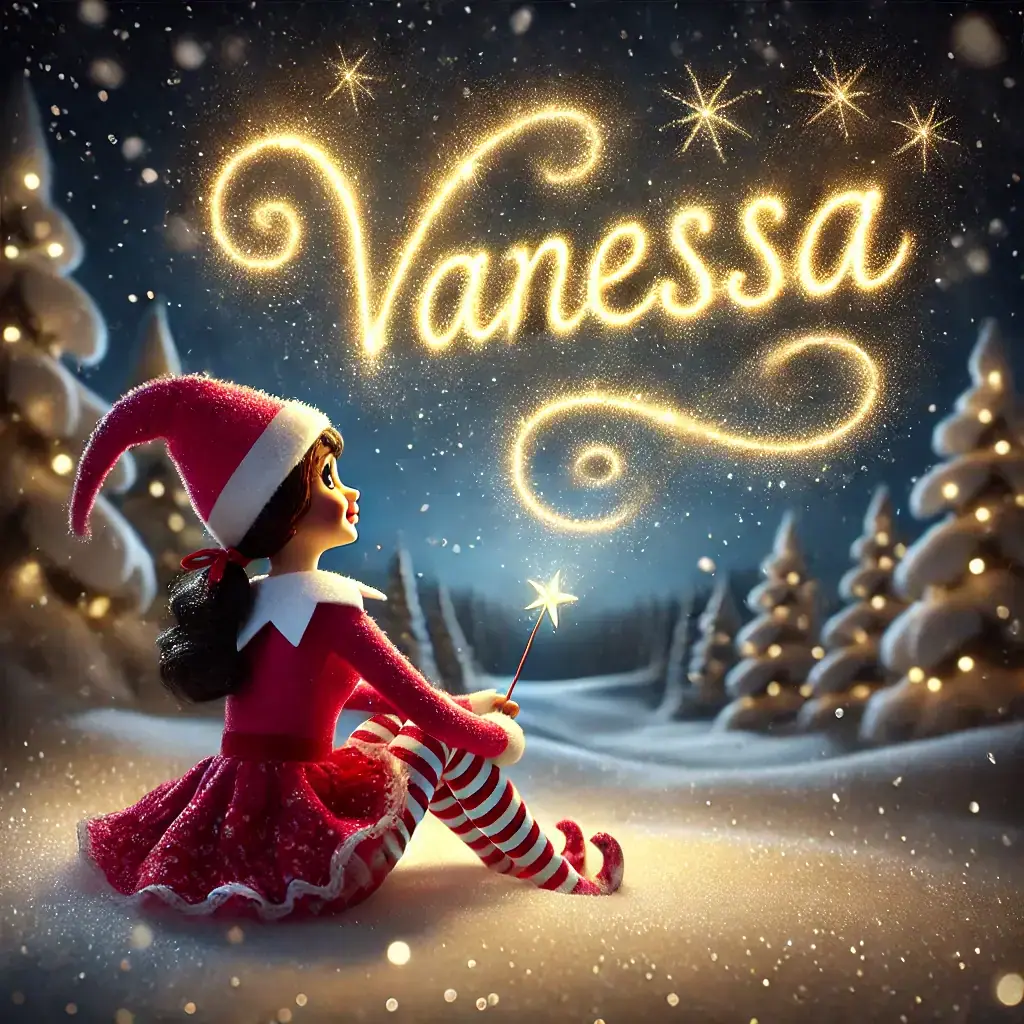 Below you'll find AI generated elf images for names starting with the letter 'V'. You can also have a go at making your own elf writing in the sky AI images.