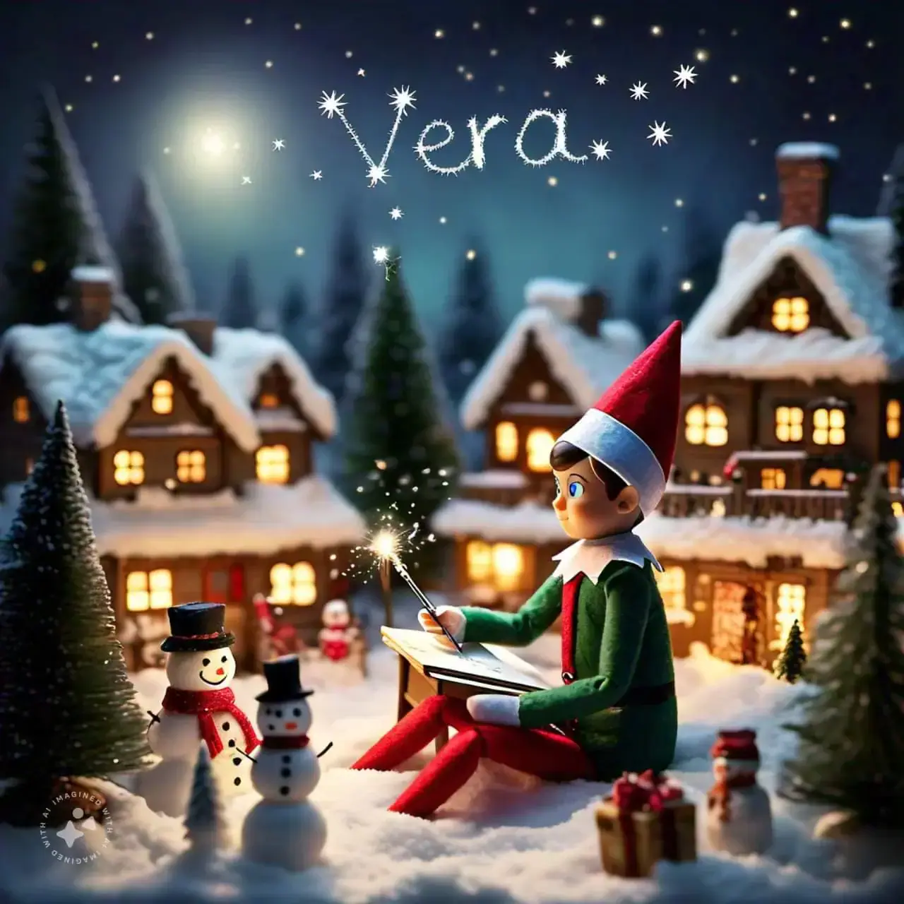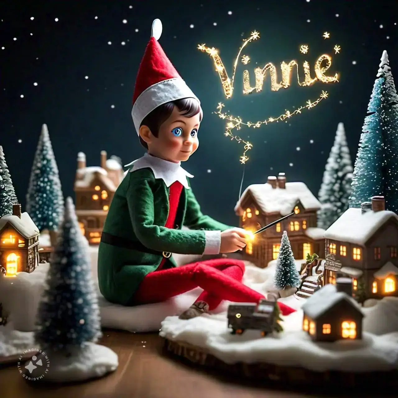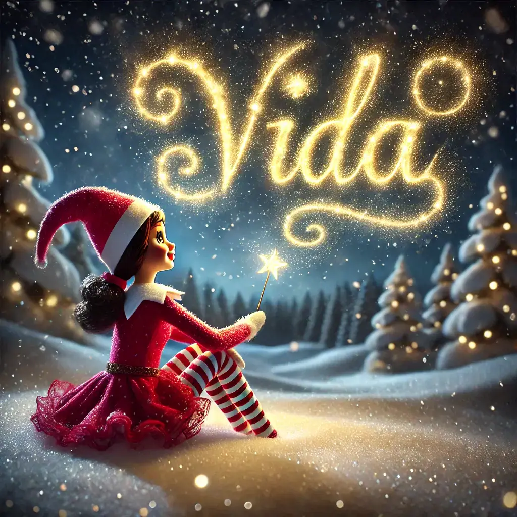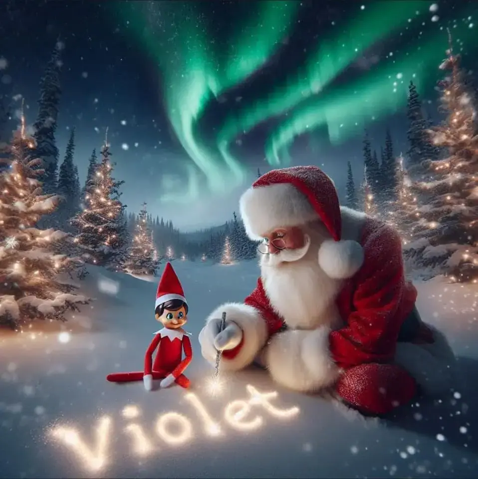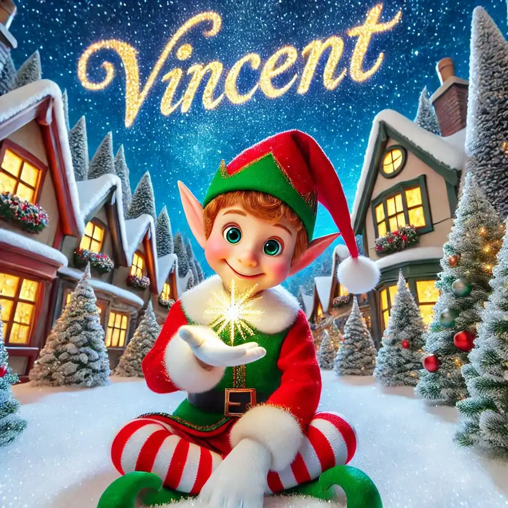 Below you'll find AI generated elf images for names starting with the letter 'V'. You can also have a go at making your own elf writing in the sky AI images.
