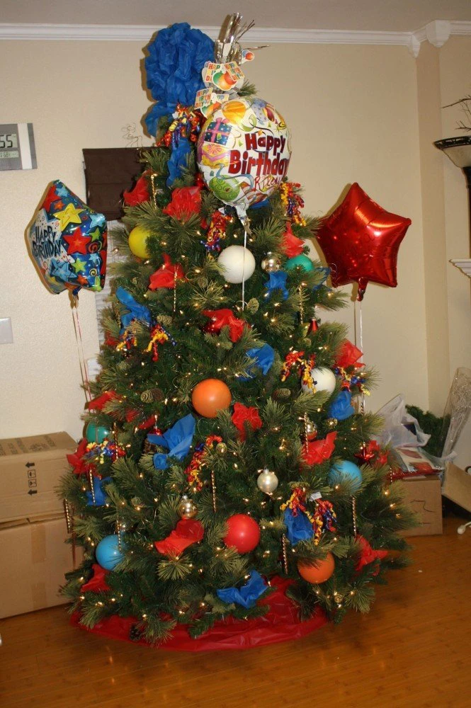 By adding a few balloons and some napkins, the Christmas tree has been transformed into a Birthday Tree. A fantastic idea for anyone with a birthday around Christmas.