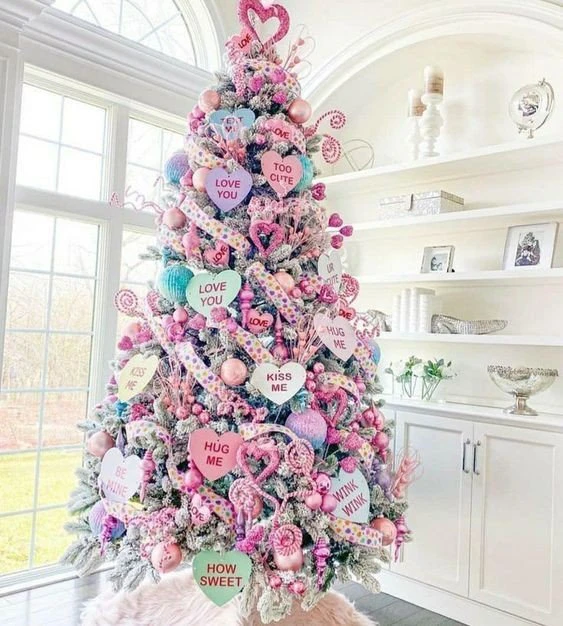 This tree is gorgeous. It has love hearts, little people on ladders holding hearts and huge lollipops. We love how this tree is so full of decorations it is hard to see the actual tree, it makes it really stand out.