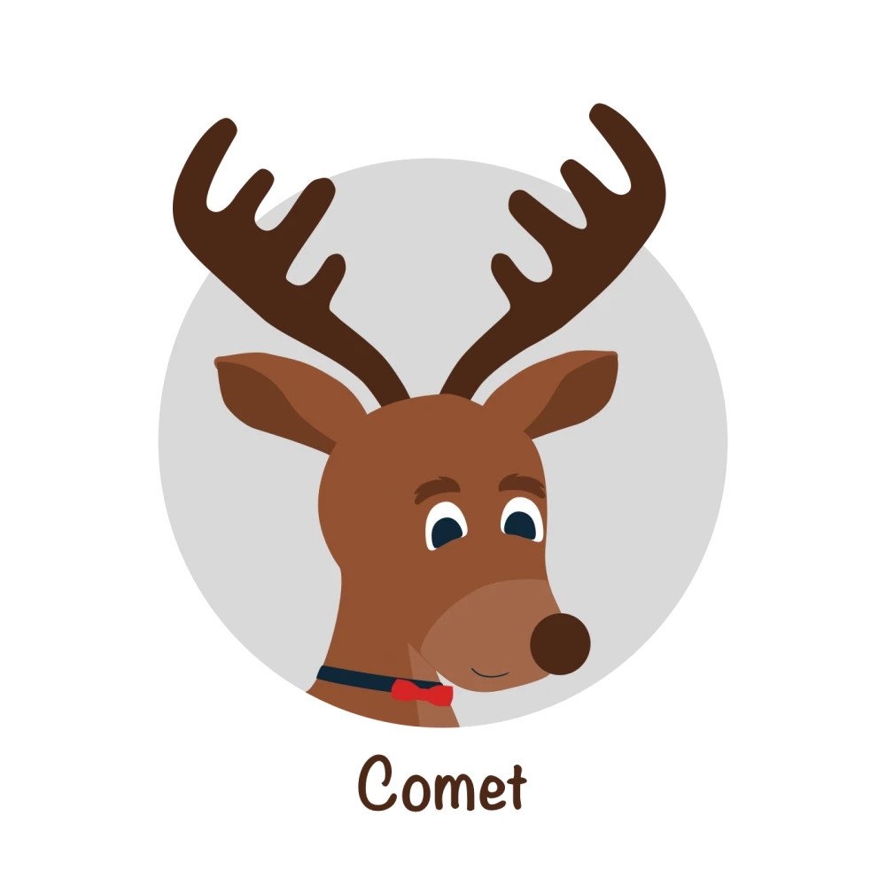 Their names are Dasher, Dancer, Prancer, Vixen, Comet, Cupid, Donner and Blitzen. For nearly 100 years people believed that Santa only had 8 reindeer. That is until 1939 when Rudolph the Red Nosed Reindeer was discovered.