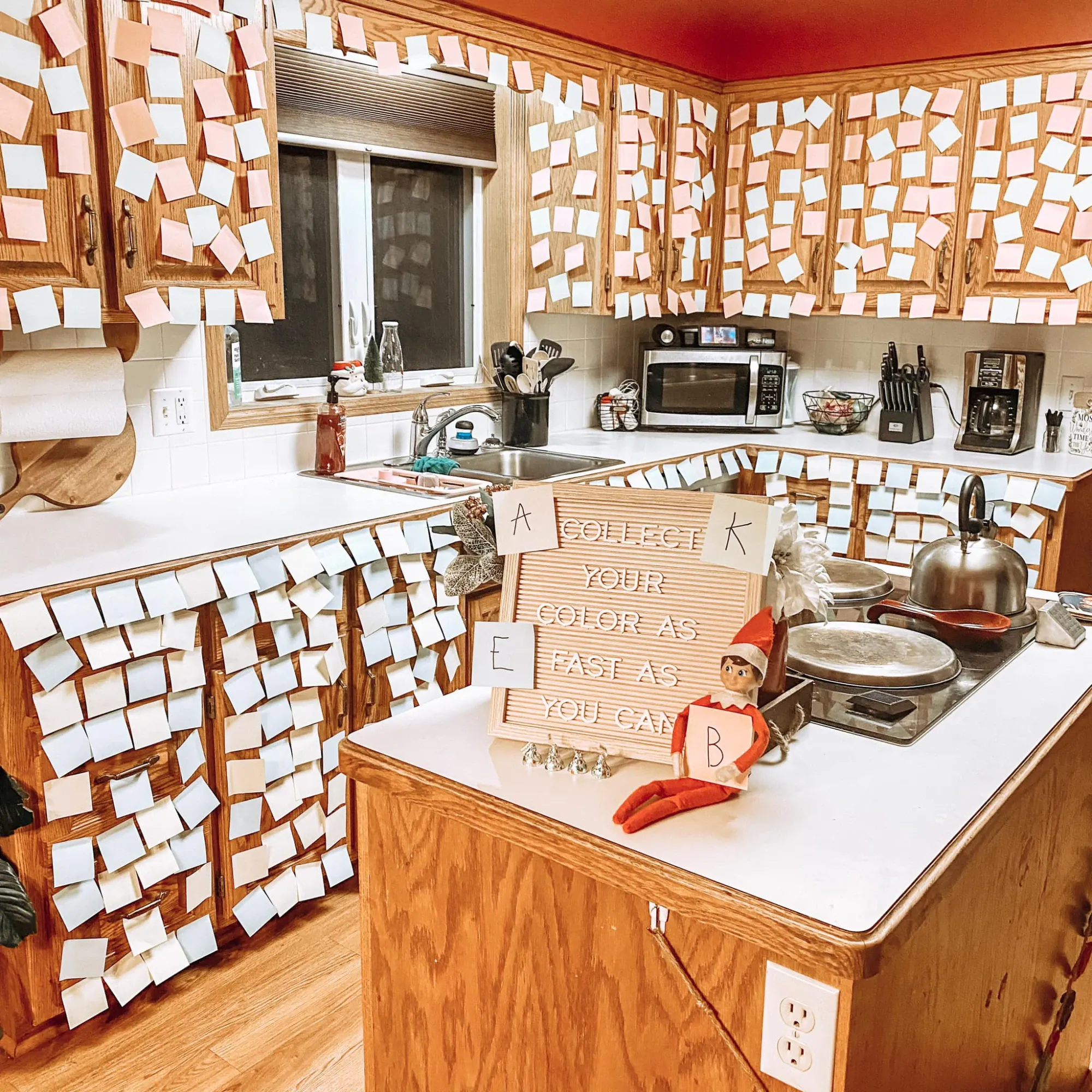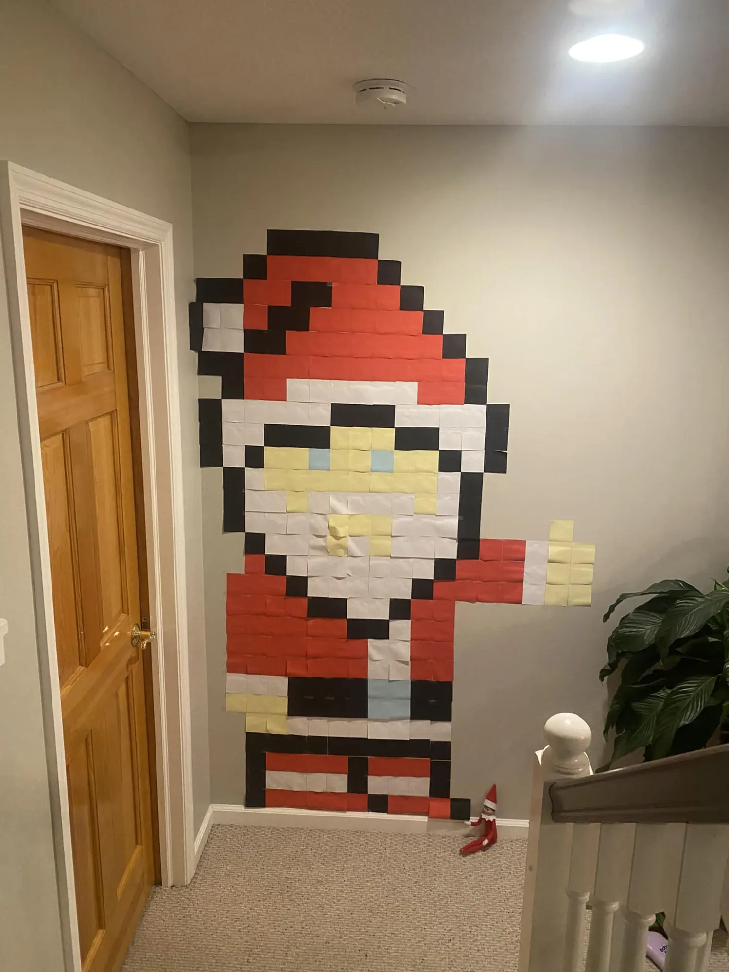 Stacey said "This was just annoying and I kept getting lost (I have ADD) and had to redo lines after realizing I was off… and I bought cheap post it notes off of Amazon and they were curling every which way and falling off so then I had to regular tape like all the corners… then I had a light switch that really messed up the middle of his face… I just wasn’t happy with this one lol- maybe legit post it brand notes are better! But it took an hour and a half and I want that time back"
