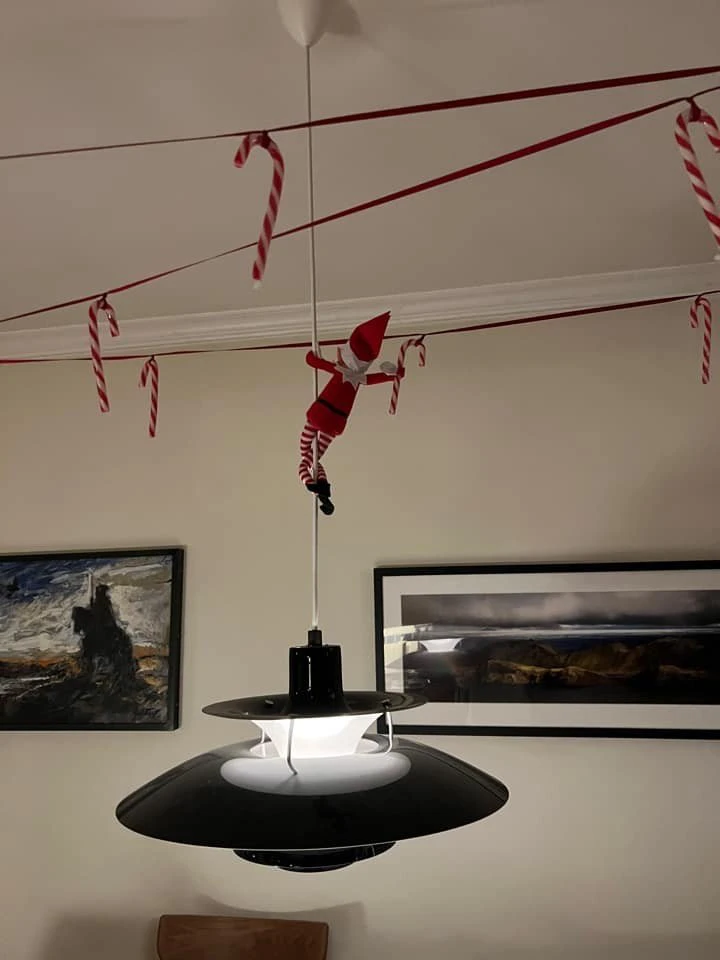 Using string wrap the elf up and hang him form the ceiling, place a large spider as if he has been caught in a web.
