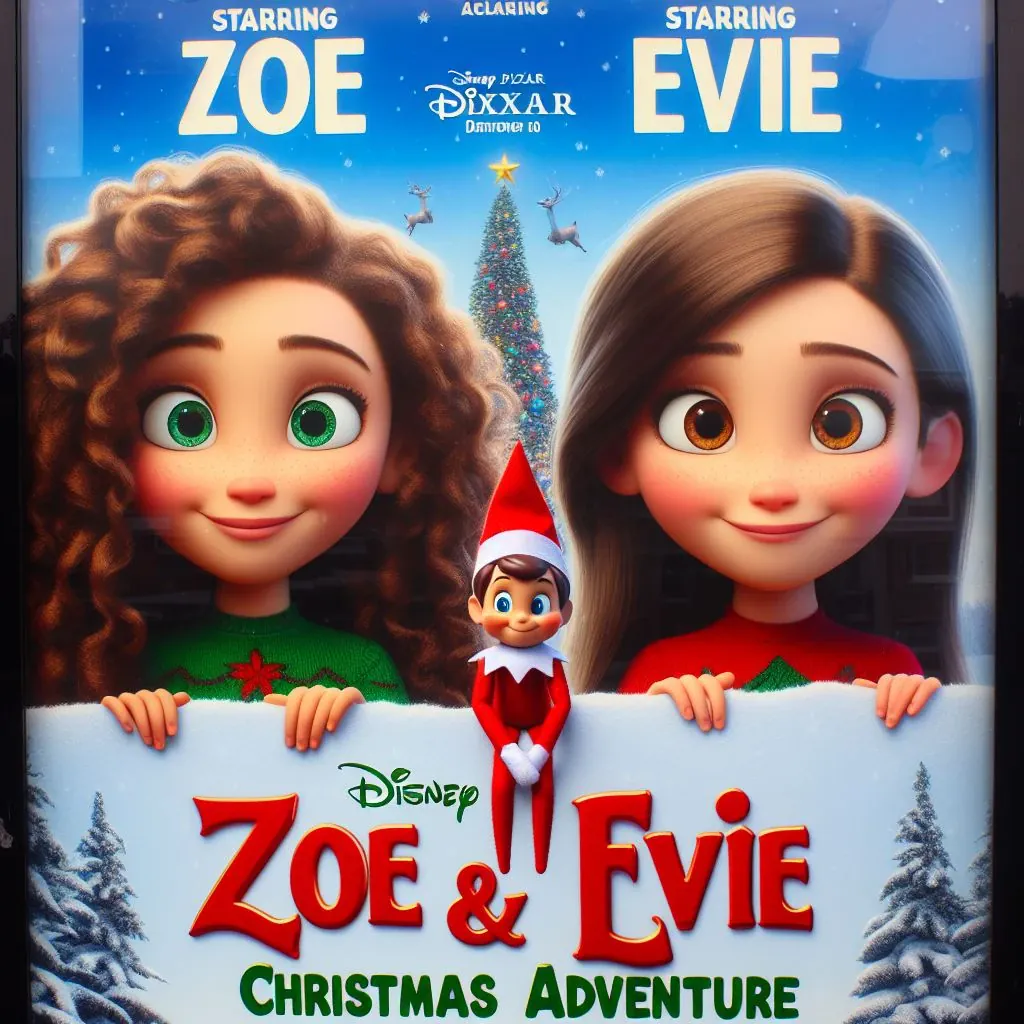 Experience the enchantment of the holiday season like never before by creating a personalized Disney Pixar movie poster featuring your children and their Elf on the Shelf or other elf doll, all made possible through the wonders of Bing AI.