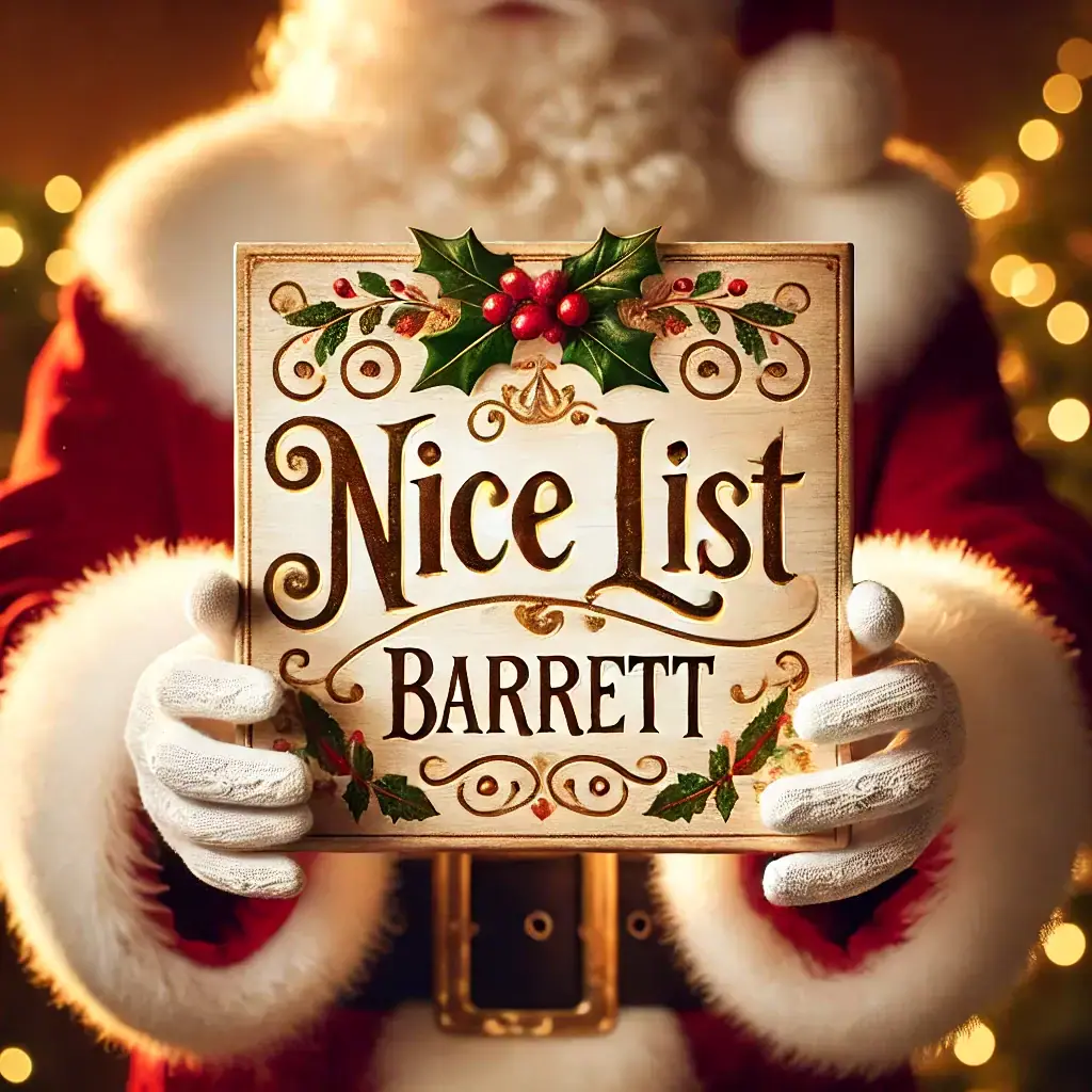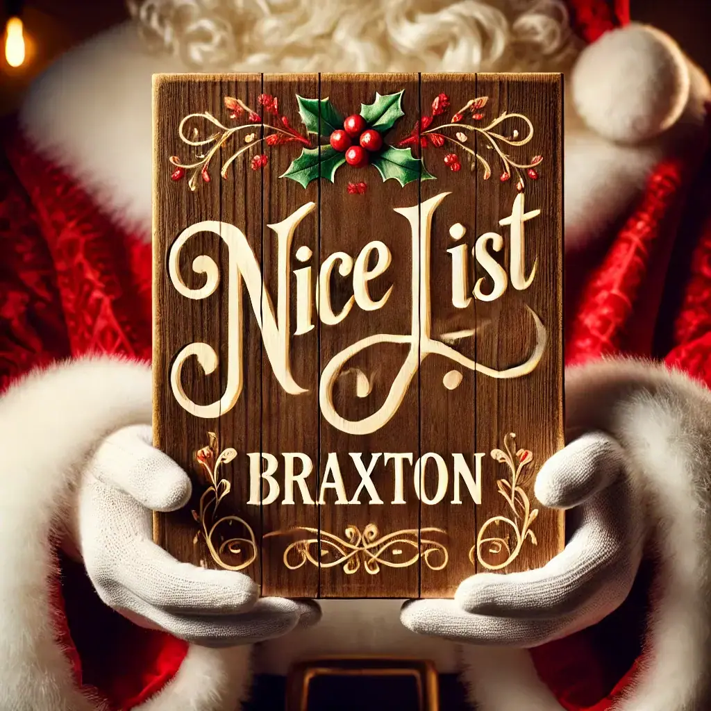Our Santa Claus Nice list plaques for names beginning with the letter 'B' are shown below. Please use the comments section at the bottom to add any requests.