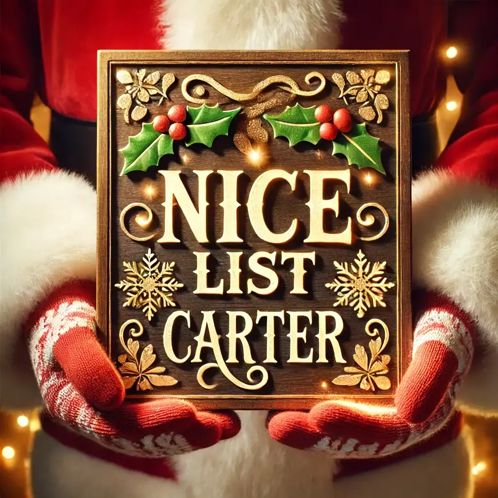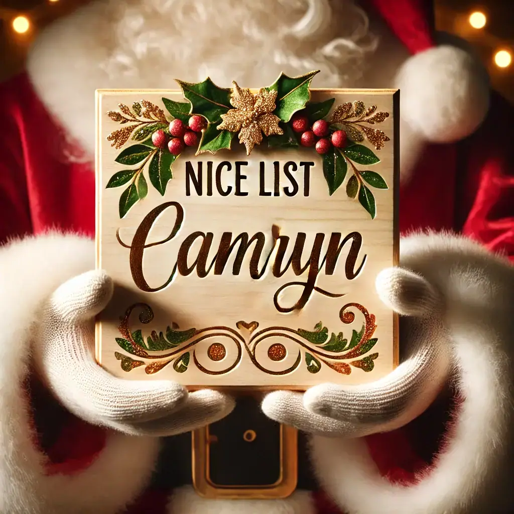 Our Santa Claus Nice list plaques for names beginning with the letter 'C' are shown below. Please use the comments section at the bottom to add any requests.