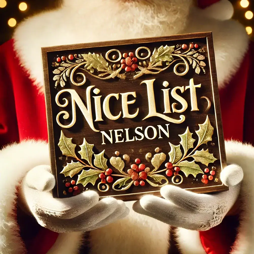 Our Santa Claus Nice list plaques for names beginning with the letter 'N' are shown below. Please use the comments section at the bottom to add any requests.