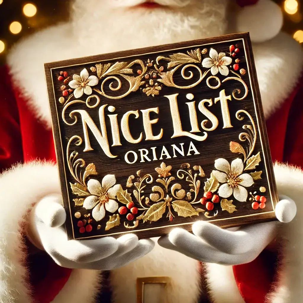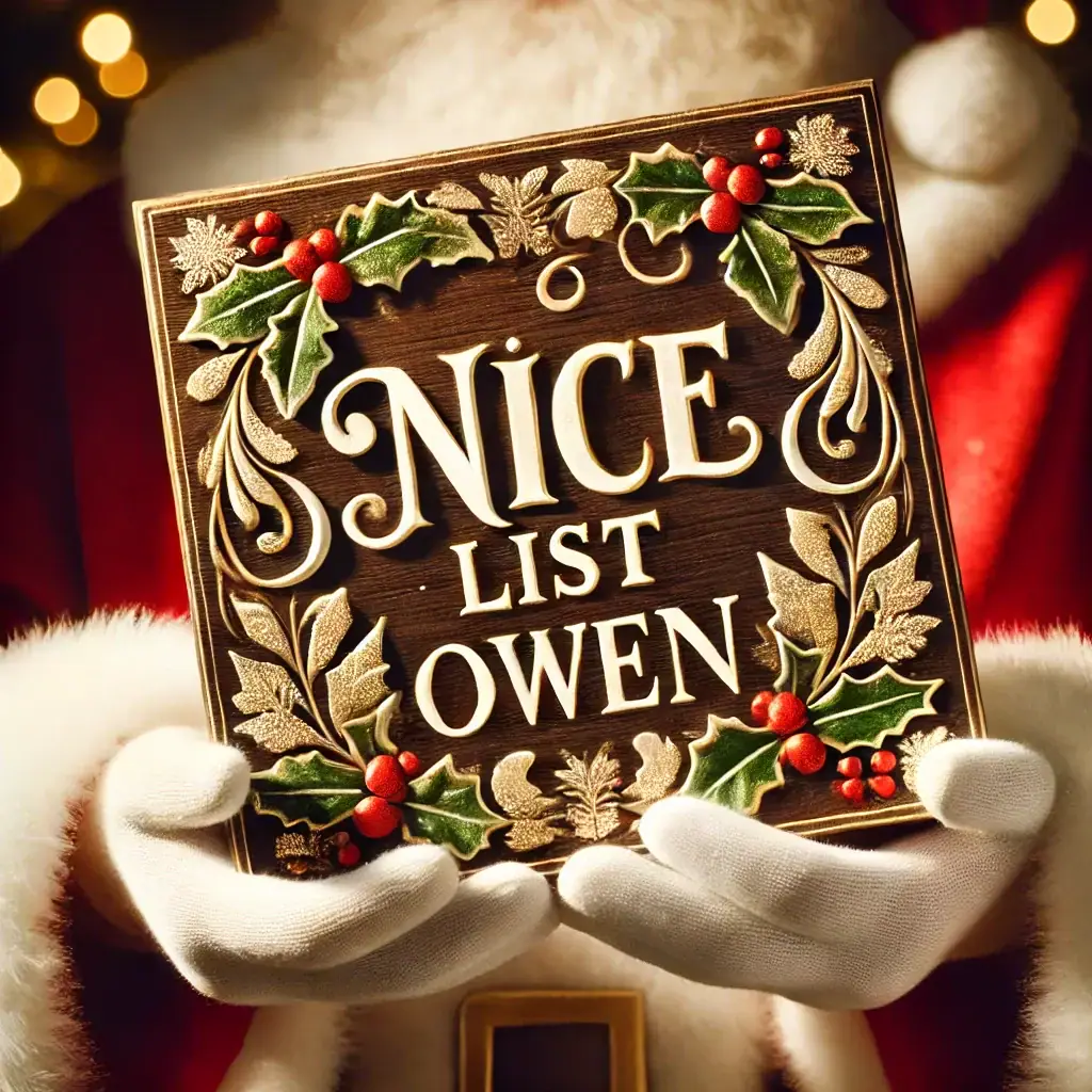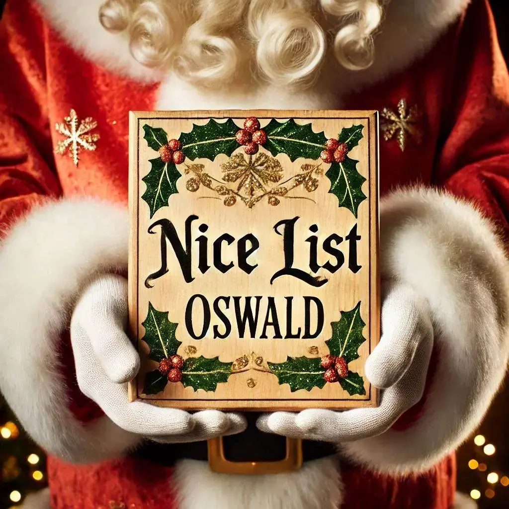 Our Santa Claus Nice list plaques for names beginning with the letter 'O' are shown below. Please use the comments section at the bottom to add any requests.