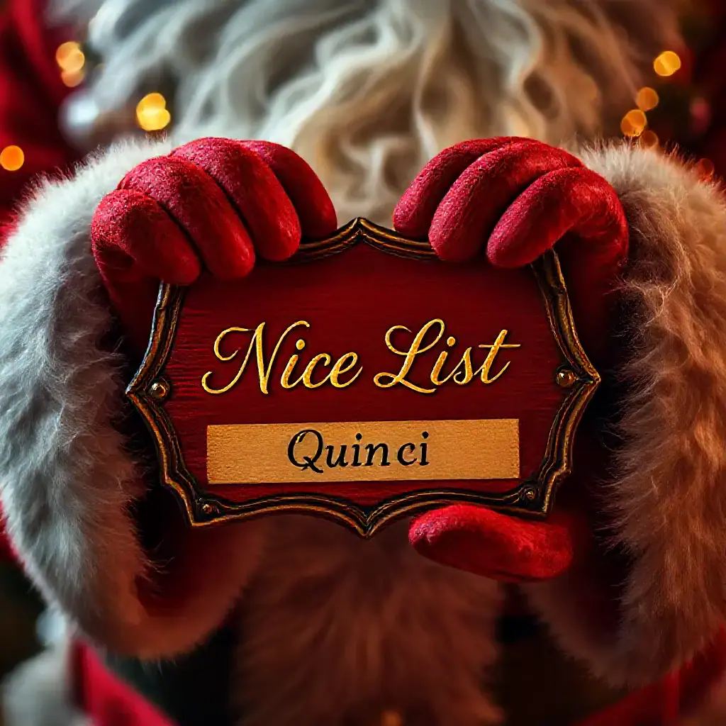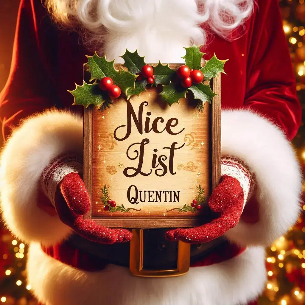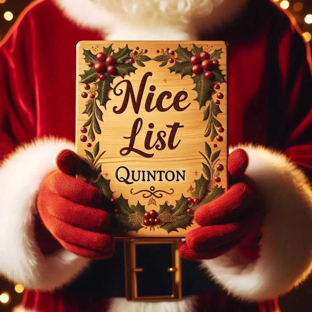 Our Santa Claus Nice list plaques for names beginning with the letter 'Q' are shown below. Please use the comments section at the bottom to add any requests.