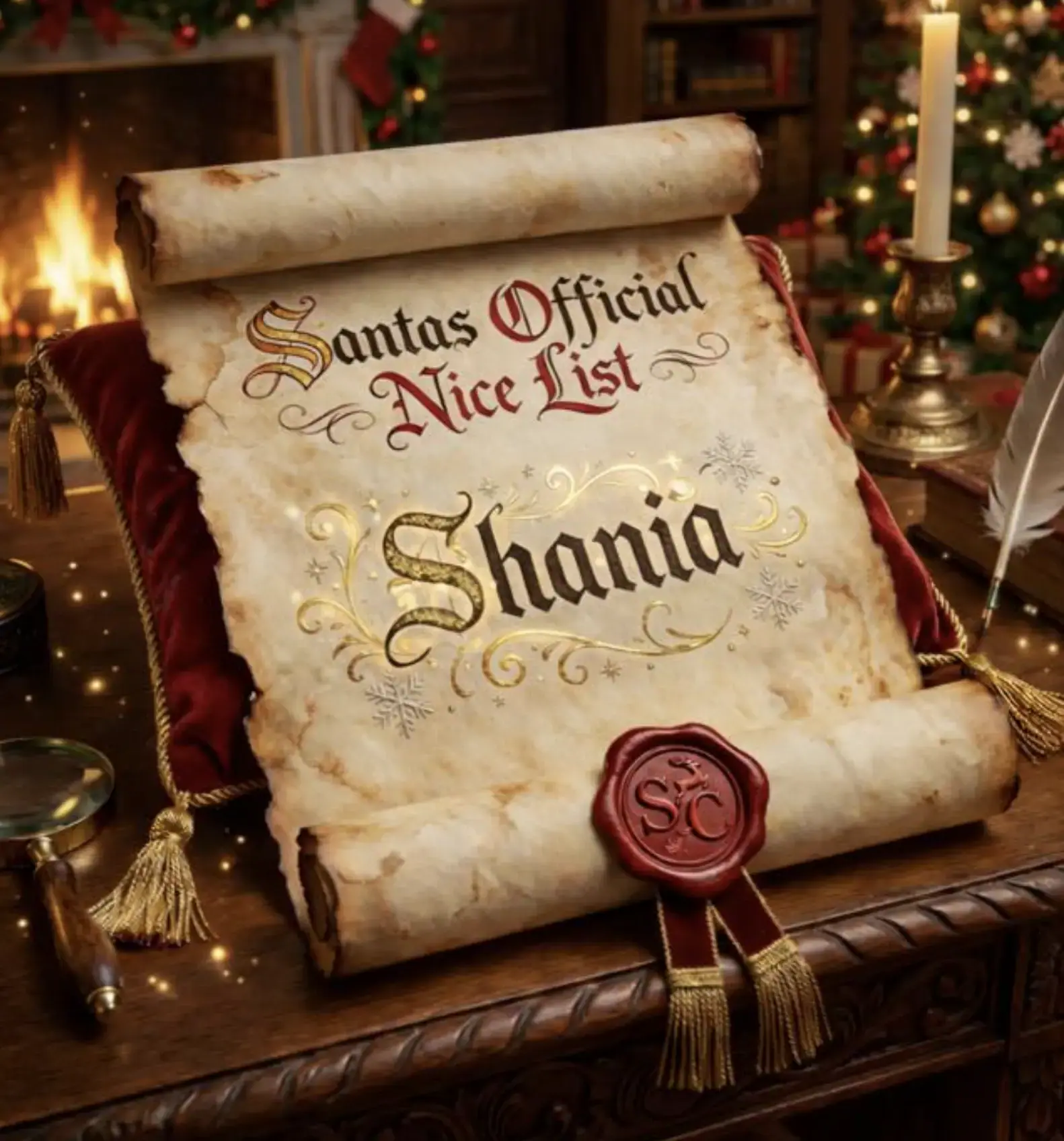 Our Santa Claus Nice list plaques for names beginning with the letter 'S' are shown below. Please use the comments section at the bottom to add any requests.