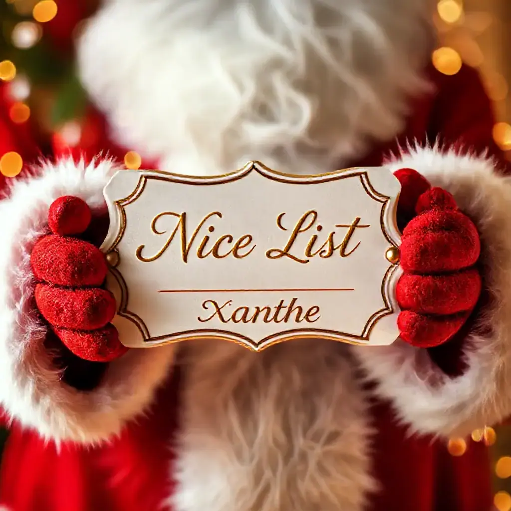 Our Santa Claus Nice list plaques for names beginning with the letter 'X' are shown below. Please use the comments section at the bottom to add any requests.