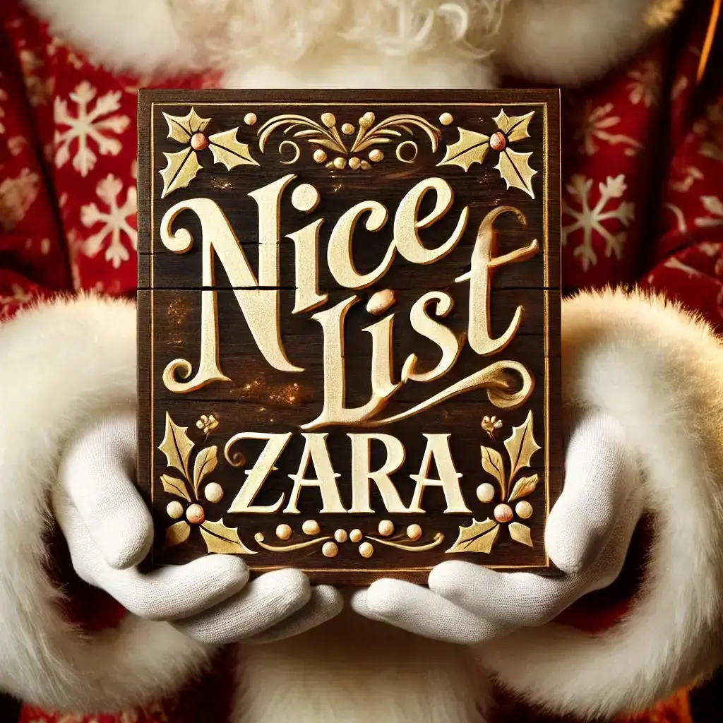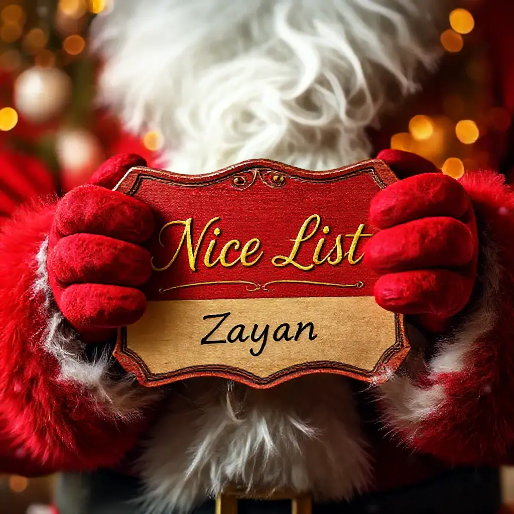 Our Santa Claus Nice list plaques for names beginning with the letter 'Z' are shown below. Please use the comments section at the bottom to add any requests.