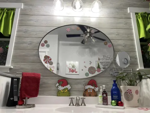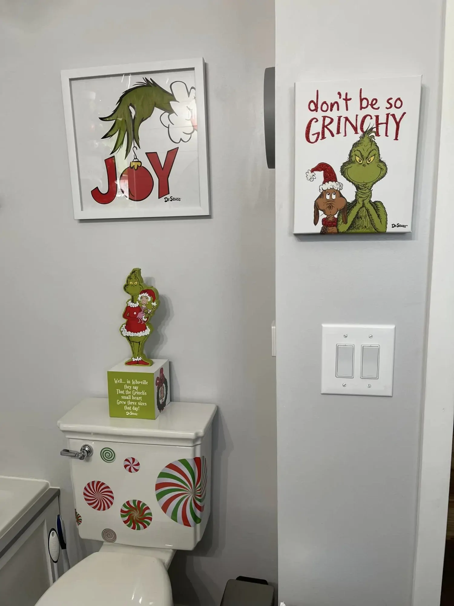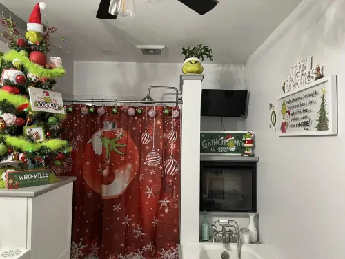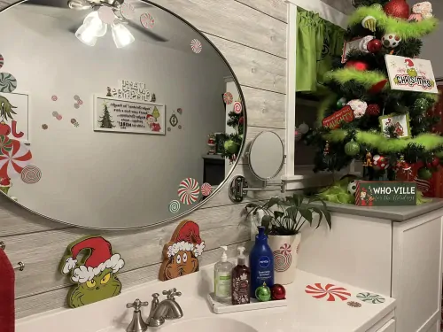 US based Rhonda Williams recently posted to a Christmas & Winter Facebook group that she had 'been wanting to do a Grinch bathroom for a couple years now.' She excitedly continued 'This year it happened'. She filled the room full of Grinch products and here's the outcome: