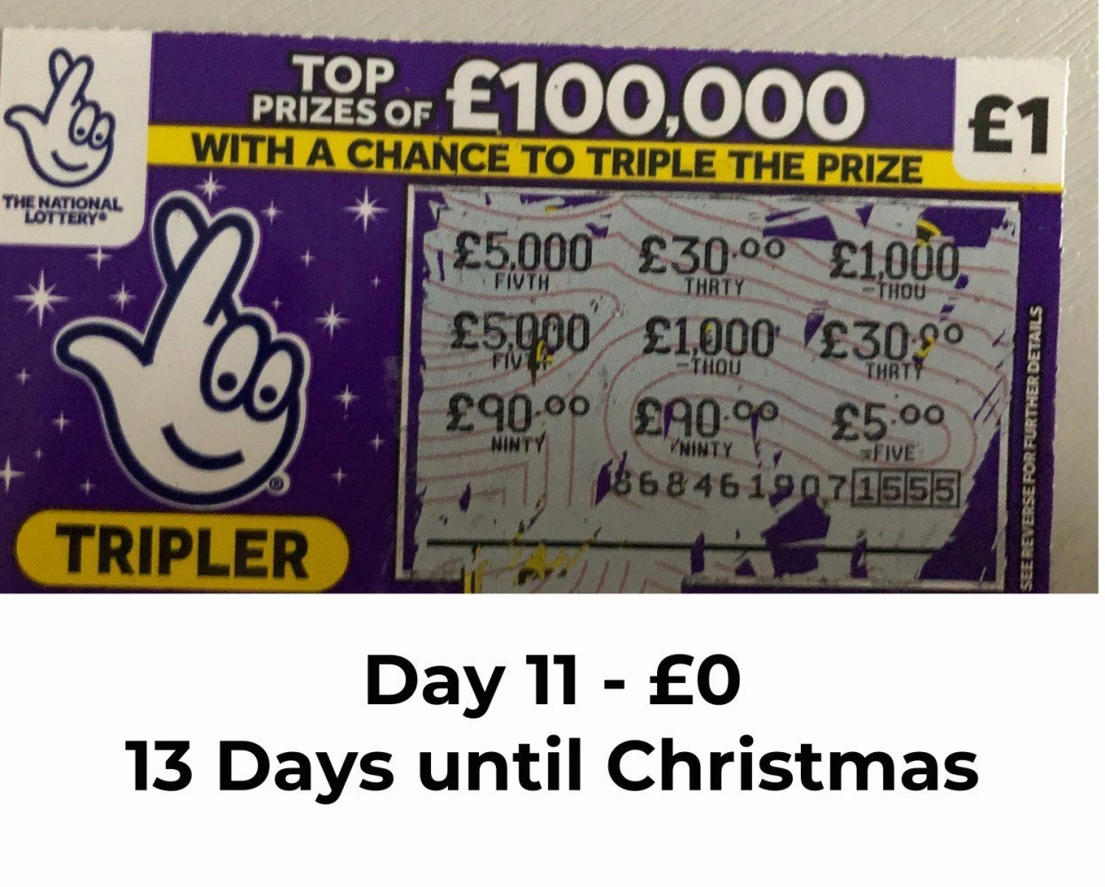 A scratch card advent calendar is a truly unique way to countdown to Christmas. I recently saw something similar on social media and decided to have a go at making my own and put my own spin on it. There are 24 £1 scratch cards with a final £5 scratch card for Christmas Day.